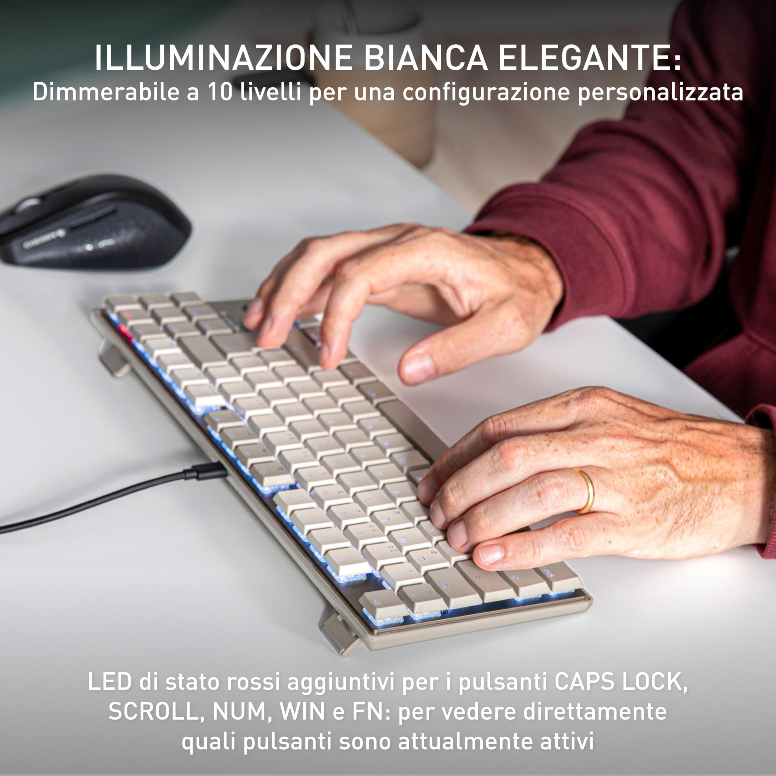 - Interruttori CHERRY MX LOW PROFILE 2.0 IVORY: sensazione di digitazione fluida e diretta con caratteristiche di commutazione lineari (nessun click) e più di 100 milioni di attuazioni per tasto