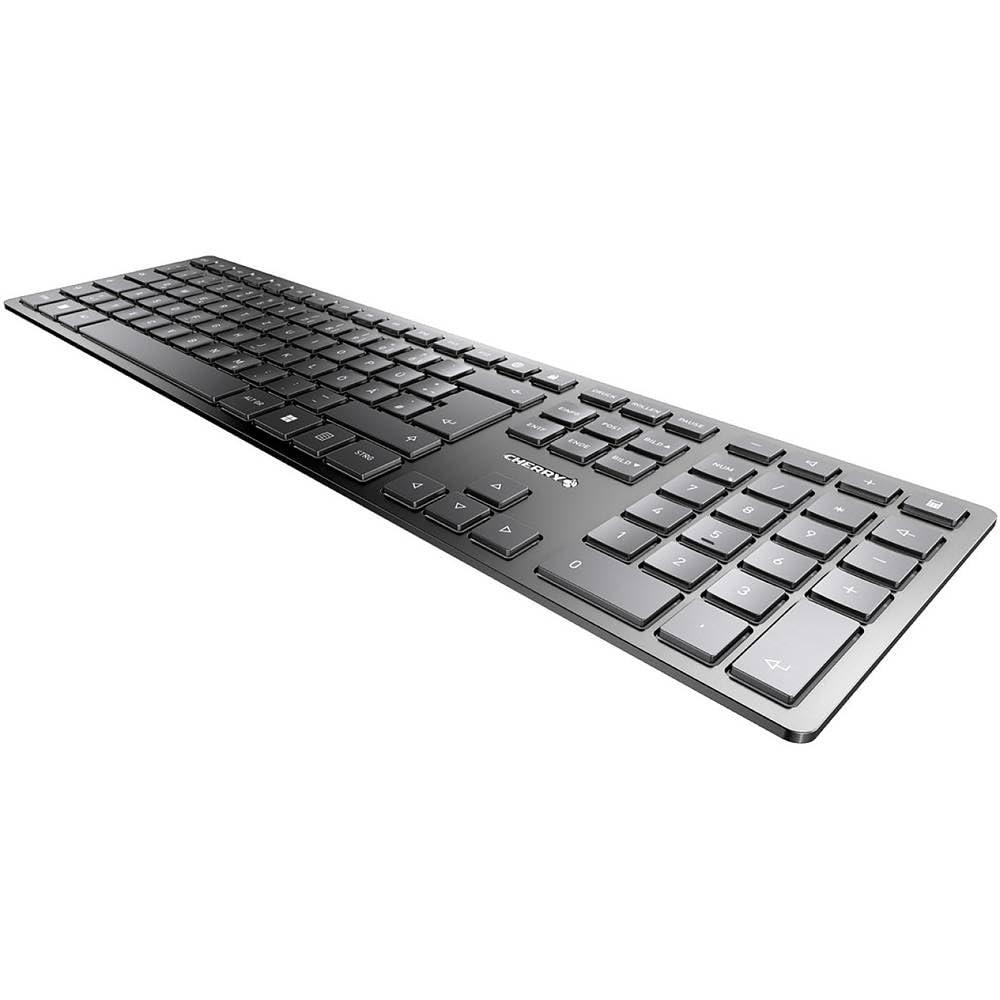 CHERRY KW 9100 SLIM, Tastiera di design Senza Fili, per la Germania QWERTZ, A scelta Connessione Bluetooth o Wireless 2,4 GHz, Tasti Piatti, Ricaricabile, Nero-Grigio, Windows