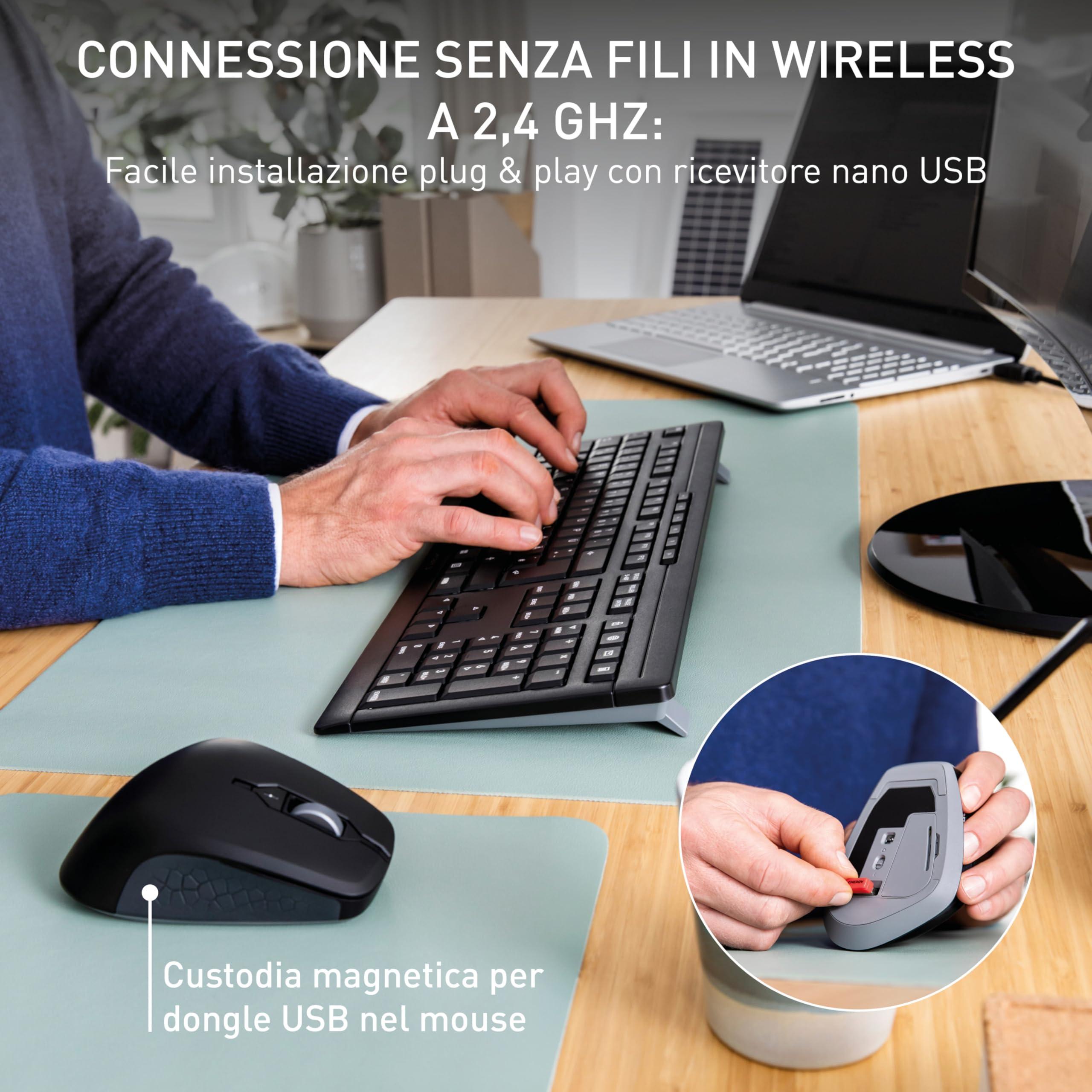 - Tastiera di alta qualità e mouse ergonomico per destrorsi: entrambi dotati di tasti silenziosi per un ambiente di lavoro silenzioso. La connessione è wireless via radio a 2,4 GHz