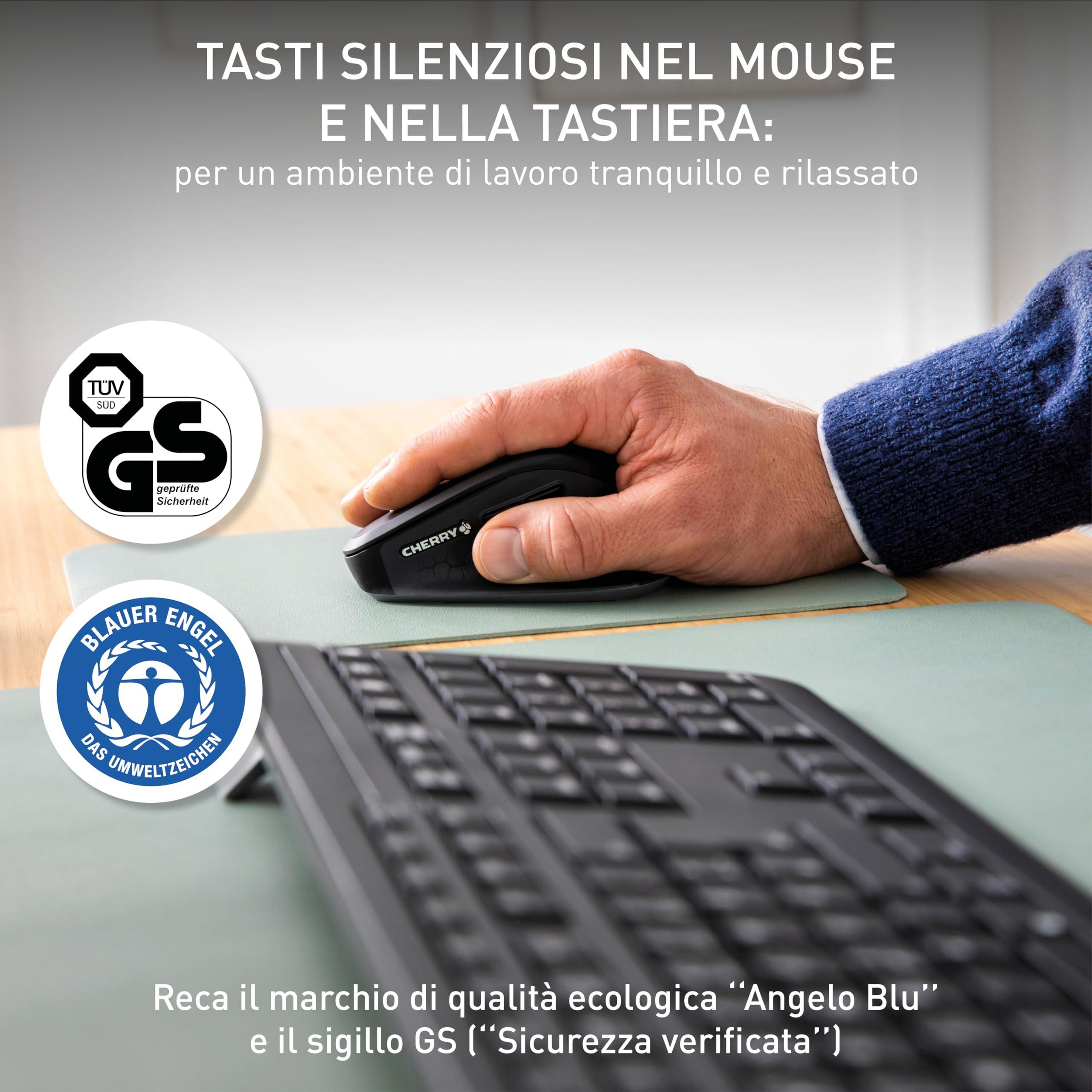 CHERRY STREAM DESKTOP COMFORT, Set Tastiera e Mouse Wireless, Layout per la Germania (QWERTZ), 2,4 GHz, Tasti Silenziosi, Mouse Ergonomico per Destrimani, Nero