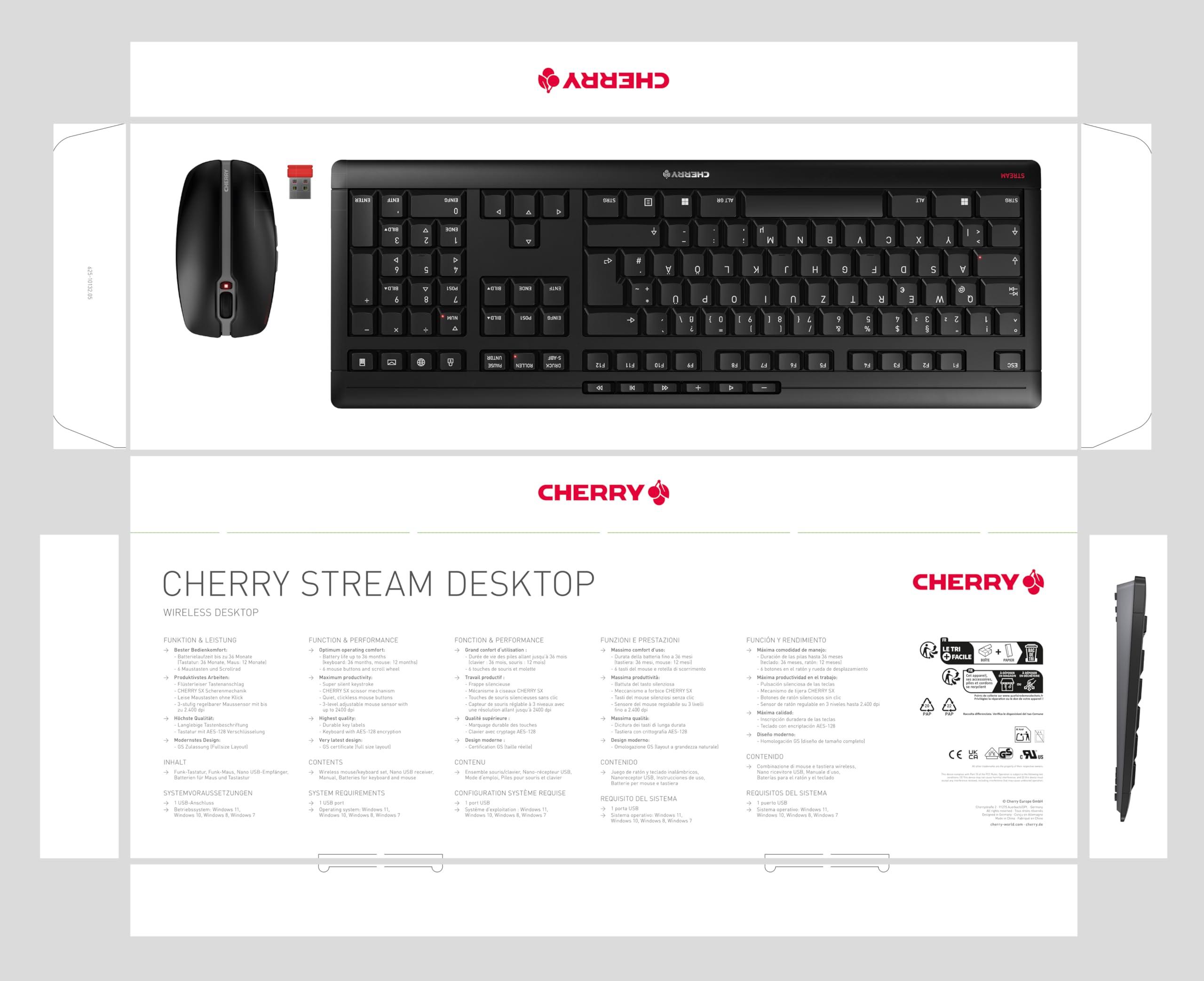 CHERRY STREAM DESKTOP, Set di Tastiera e Mouse Senza Fili, Layout per la Francia (AZERTY), Wireless 2,4 GHz, Battitura Silenziosa dei Tasti, Alimentazione a Batteria, Nero