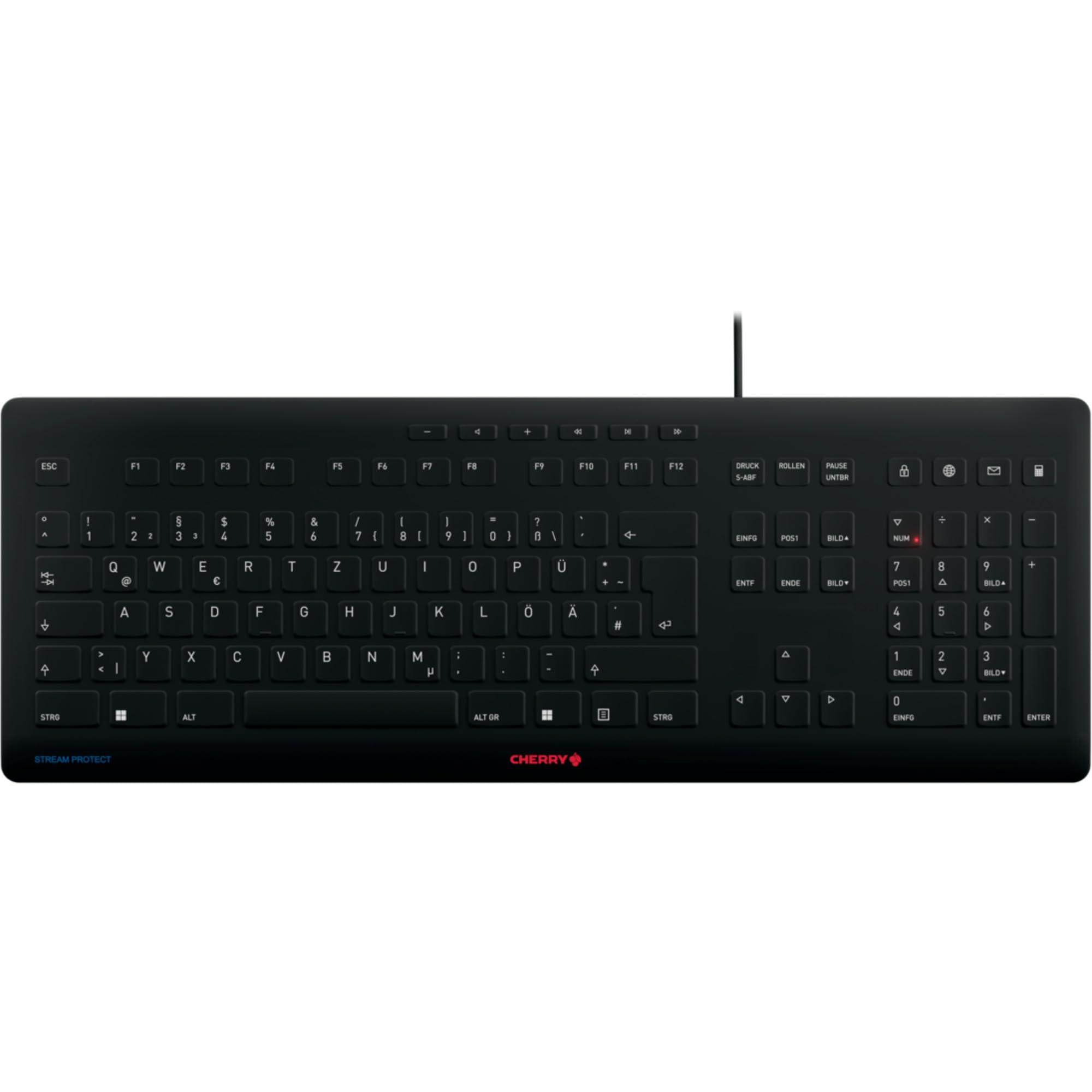 CHERRY STREAM PROTECT KEYBOARD, Tastiera Con Filo con Copritastiera Removibile in Silicone, Layout per la Germania (QWERTZ), Design piatto, Disinfettabile, Nero