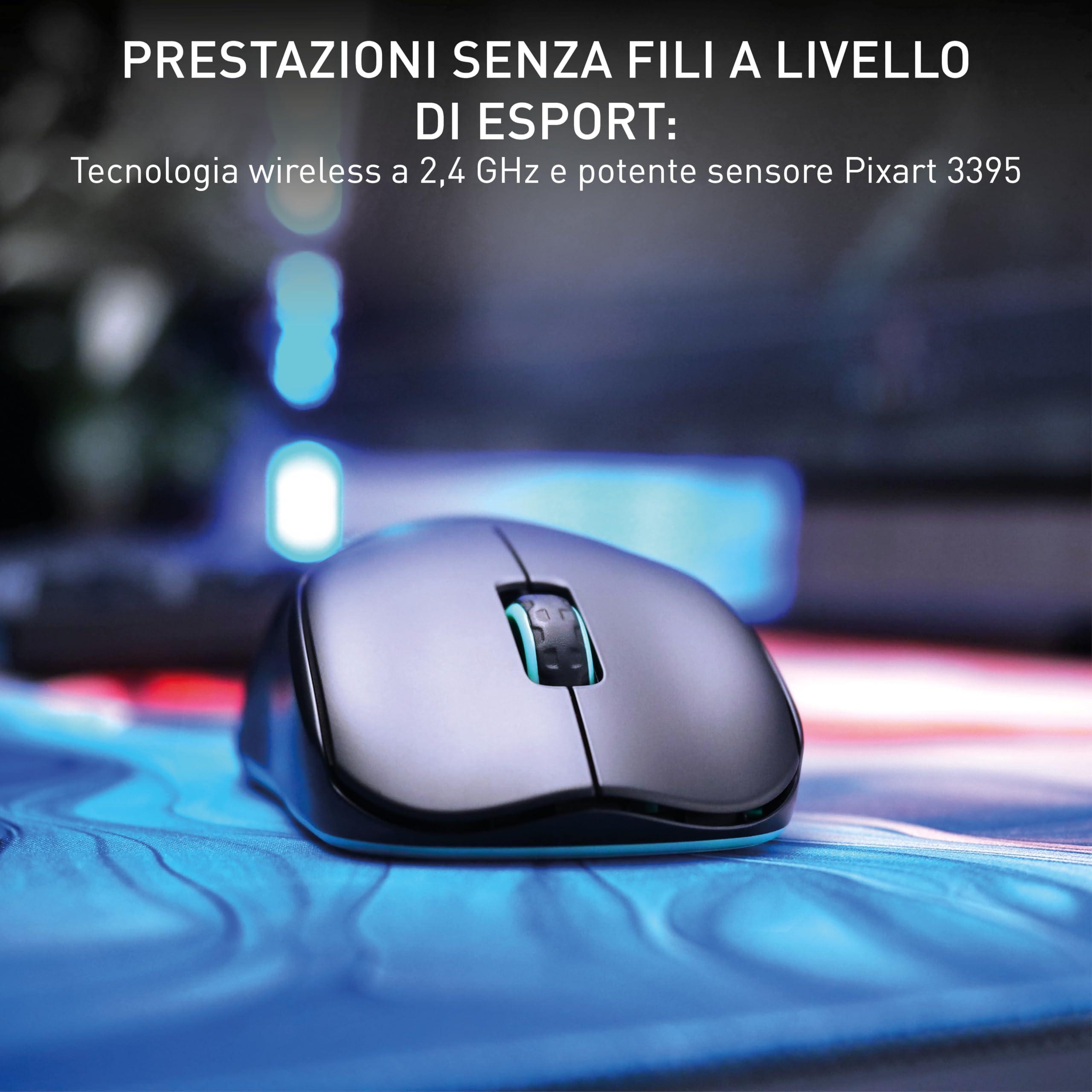 - Prestazioni wireless per esport ad alti livelli: Tecnologia RF a 2,4 GHz con dongle USB per massima mobilità, senza compromettere velocità e tempi di reazione