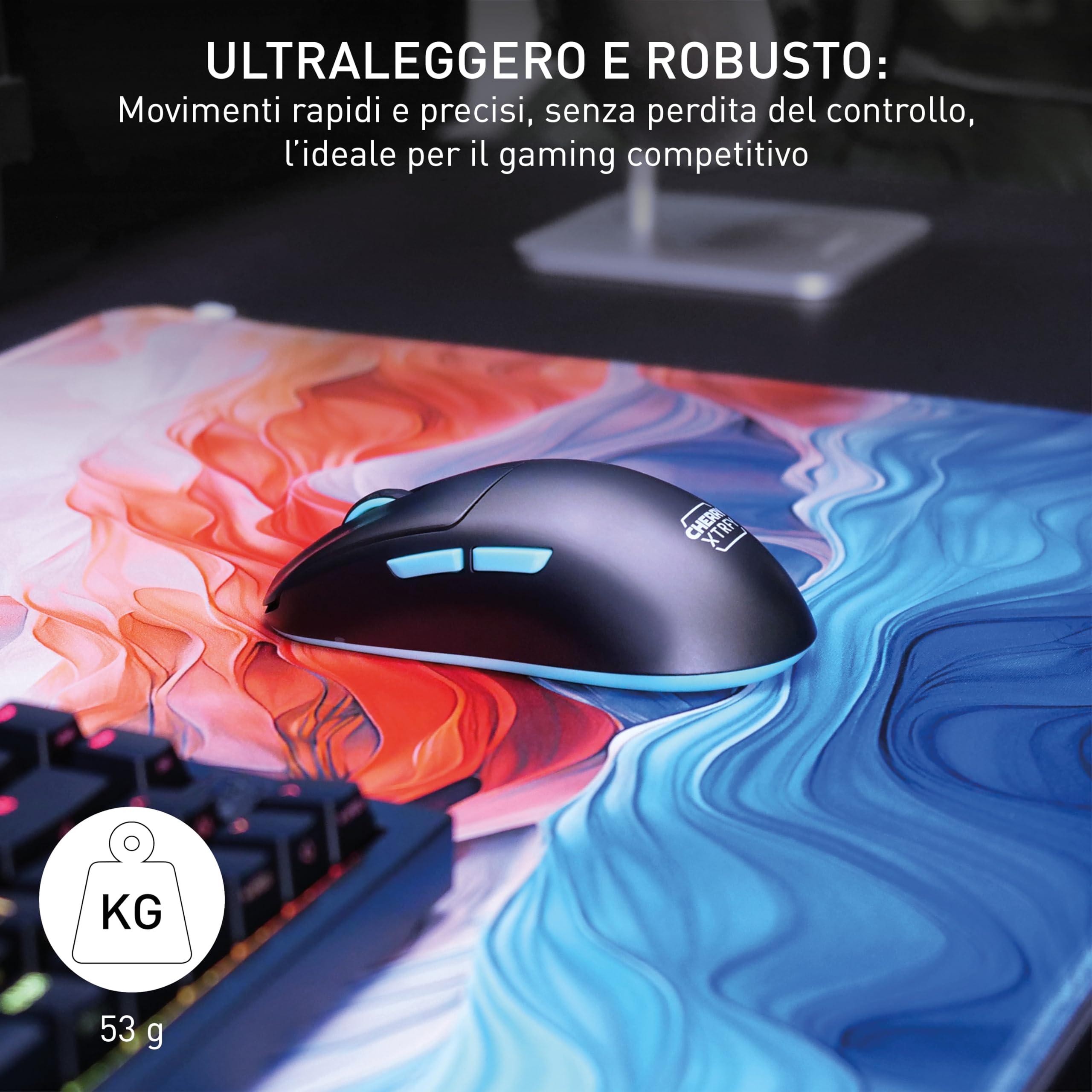 CHERRY XTRFY M68 Wireless, Mouse Gaming Senza Fili Ultra-Leggero, 2,4 GHz RF, Ottimizzato per eSport, Forma Simmetrica con Parte Frontale Ultra-Bassa, Nero
