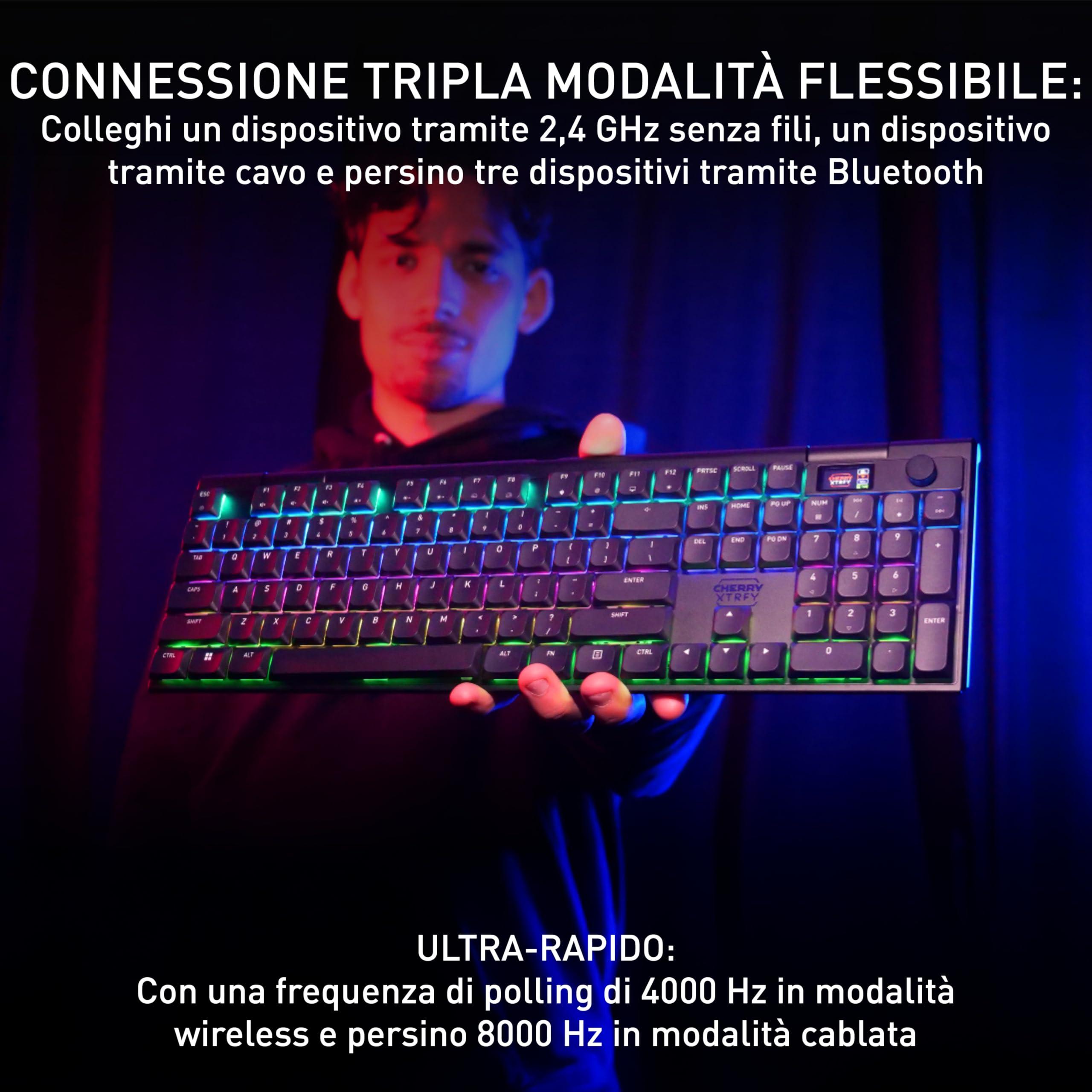CHERRY XTRFY MX 10.1 Wireless, Tastiera Da Gioco Meccanica A Basso Profilo, Layout Tedesco QWERTZ, Funzione Multi-Device, Interruttori MX LP 2.0 RED, Nero