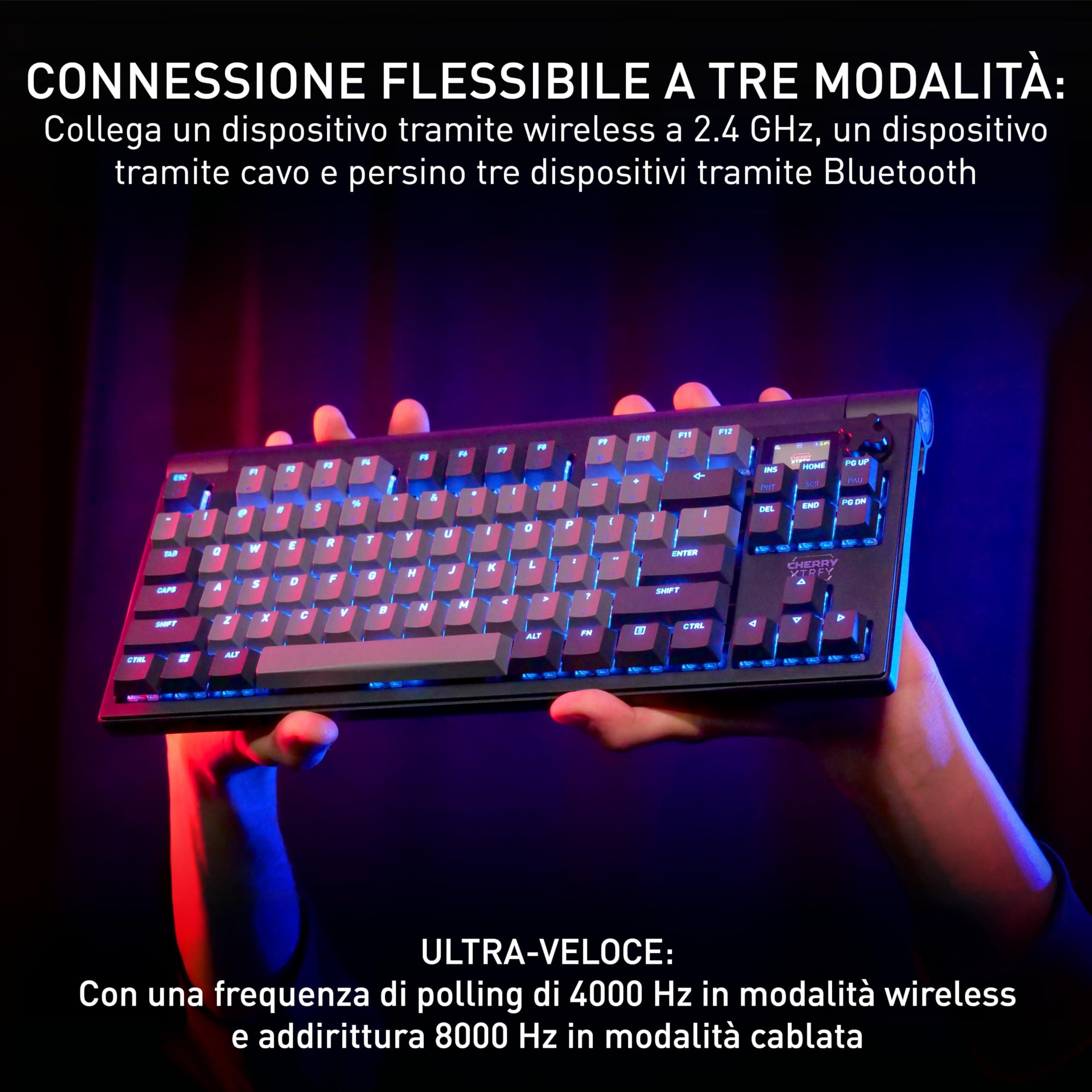 CHERRY XTRFY MX 8.3 TKL Wireless, Tastiera Da Gioco Senza Tastierino Numerico, Layout Tedesco QWERTZ, Interruttori MX2A RED Hot Swappable, Starfall Grey