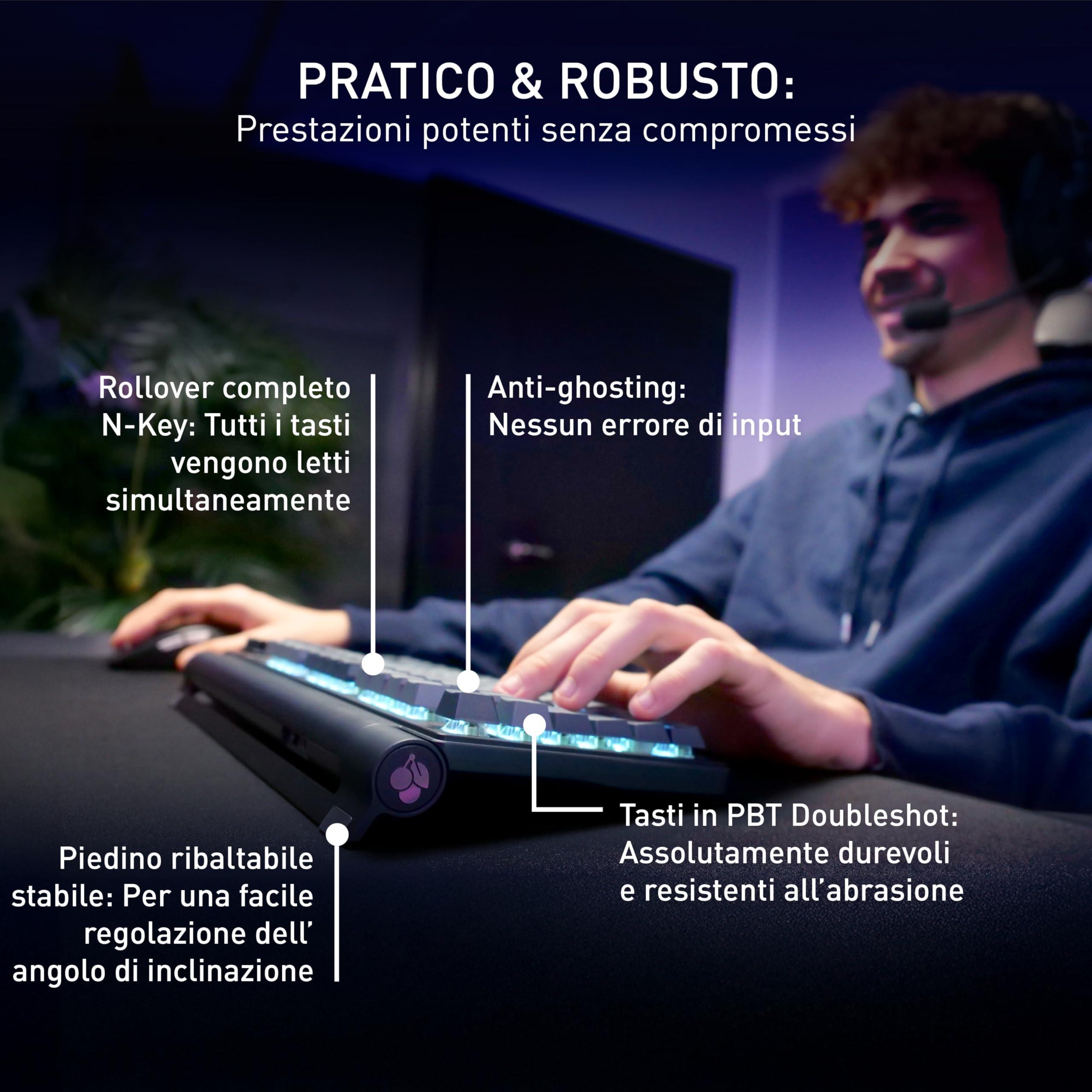 - Tastiera da gioco wireless in formato tenkeyless: grazie alla speciale struttura a guarnizione e all'imbottitura interna multistrato, l'esperienza di digitazione è ancora più fluida
