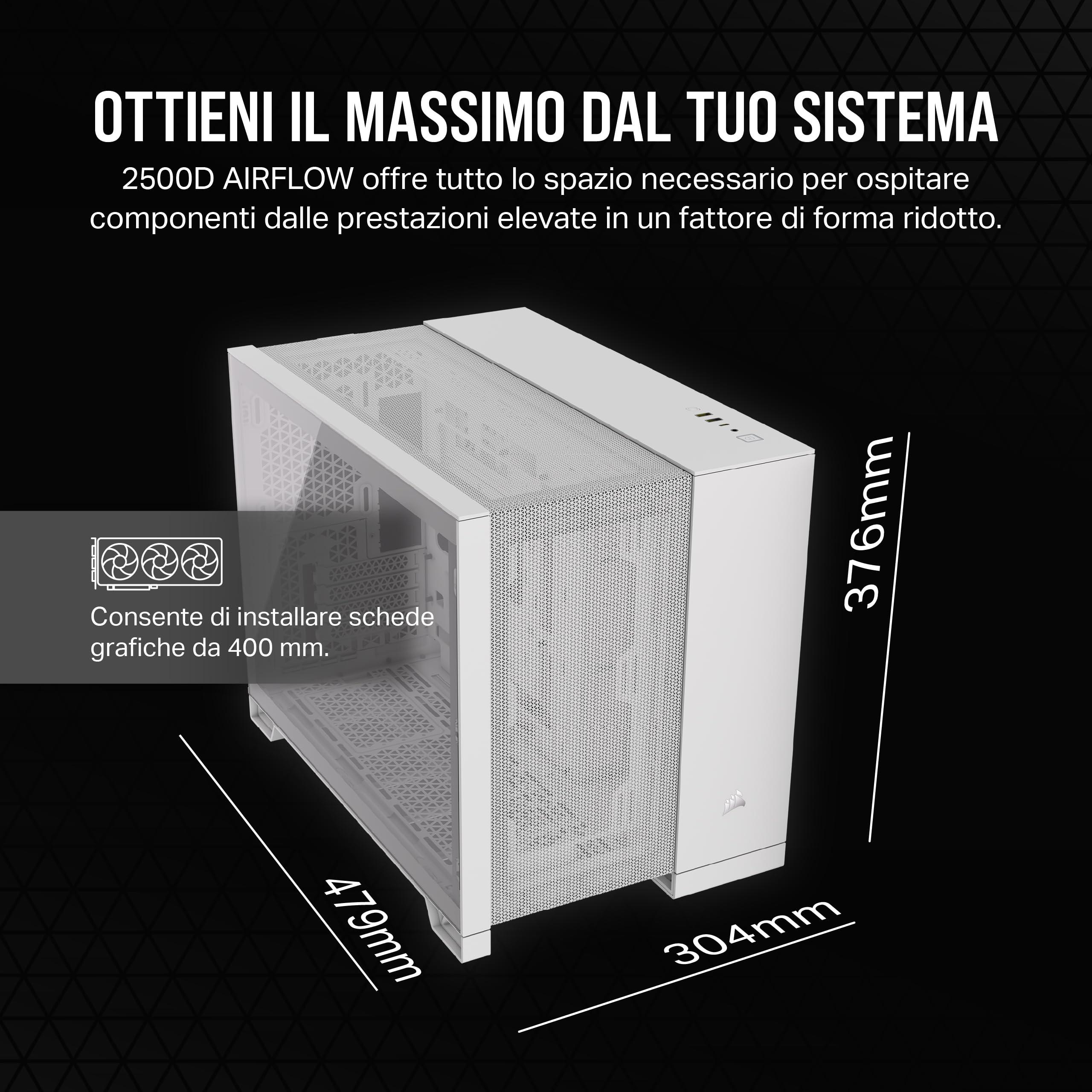 - Flusso d'aria impareggiabile per i PC SFF: Anche con un fattore di forma mATX, il 2500D AIRFLOW è dotato di pannelli frontali, laterali e sul tetto completamente a rete che garantiscono un raffreddamento eccezionale per i PC di fascia alta di piccolo formato.