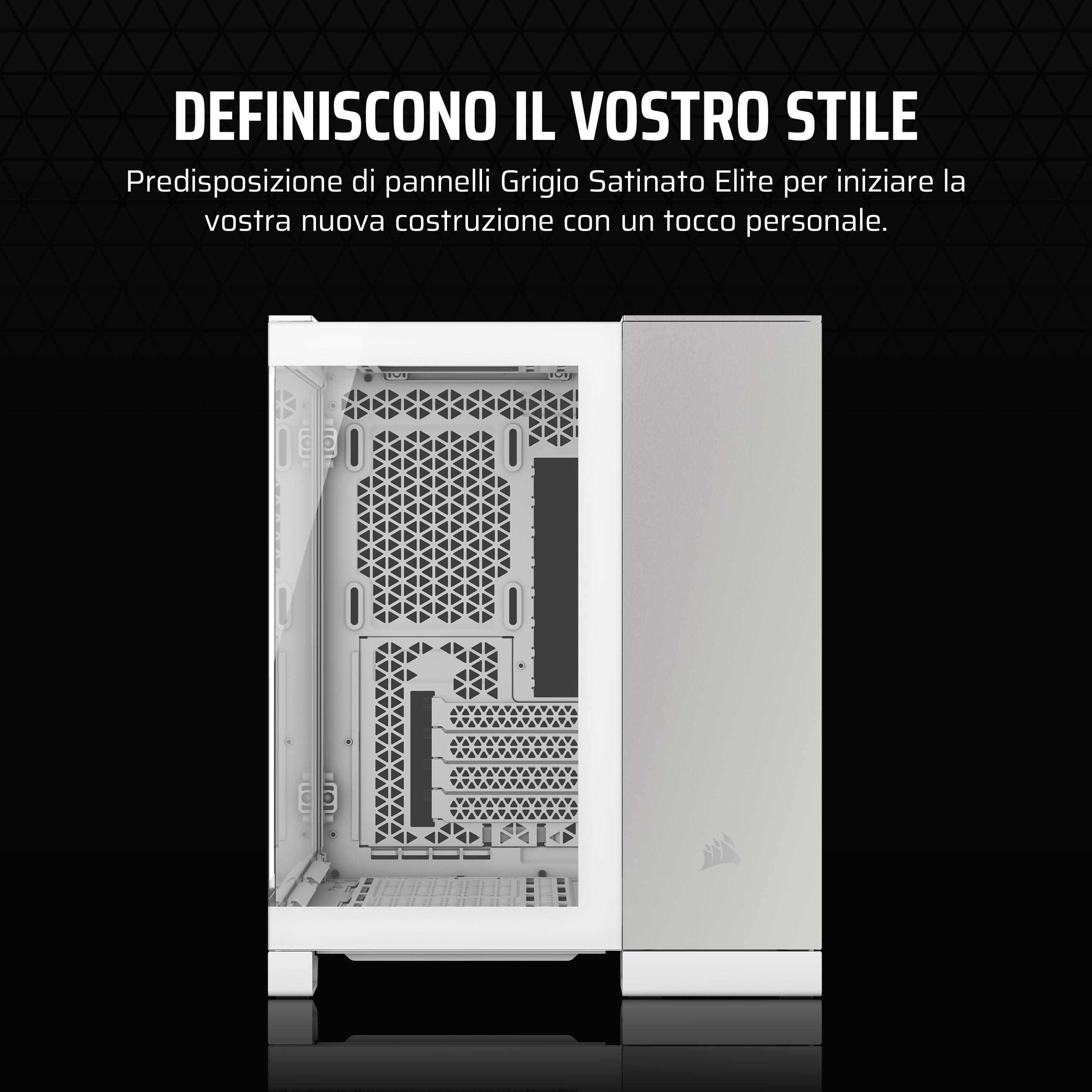 CORSAIR 2500X Small-Tower mATX Case per PC Doppia Camera - Vetro Temperato Panoramico - Compatibile con Scheda Madre a Connessione Inversa - Nessuna Ventola Inclusa - Bianco/Alluminio Grigio Satinato
