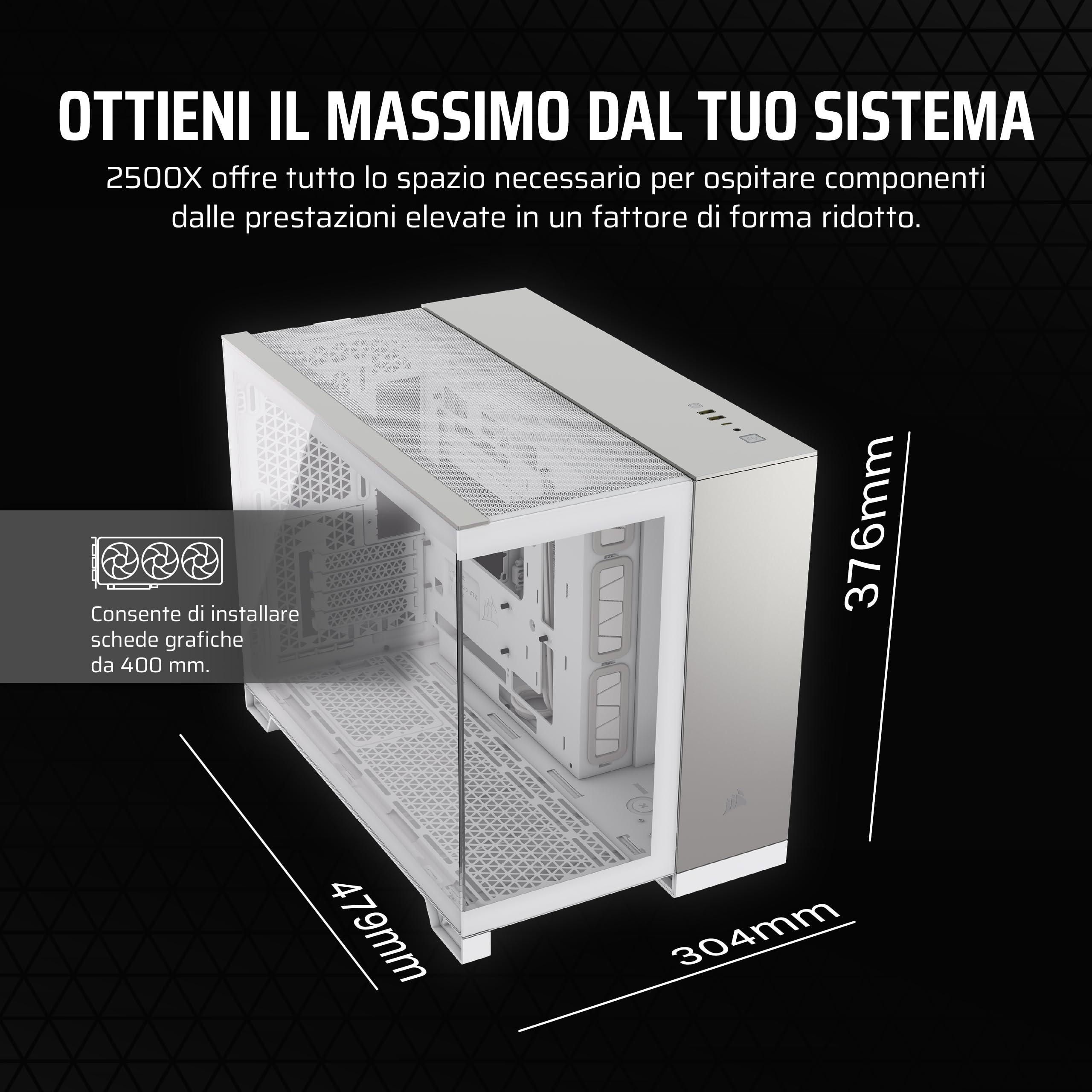 - Flusso d'aria impareggiabile per i PC SFF: Il design del 2500X, che fa girare la testa, mette in mostra la vostra struttura di piccolo formato dietro a pannelli frontali e laterali in vetro temperato avvolgenti, perfetti per mostrare l'opera d'arte che è il vostro PC.