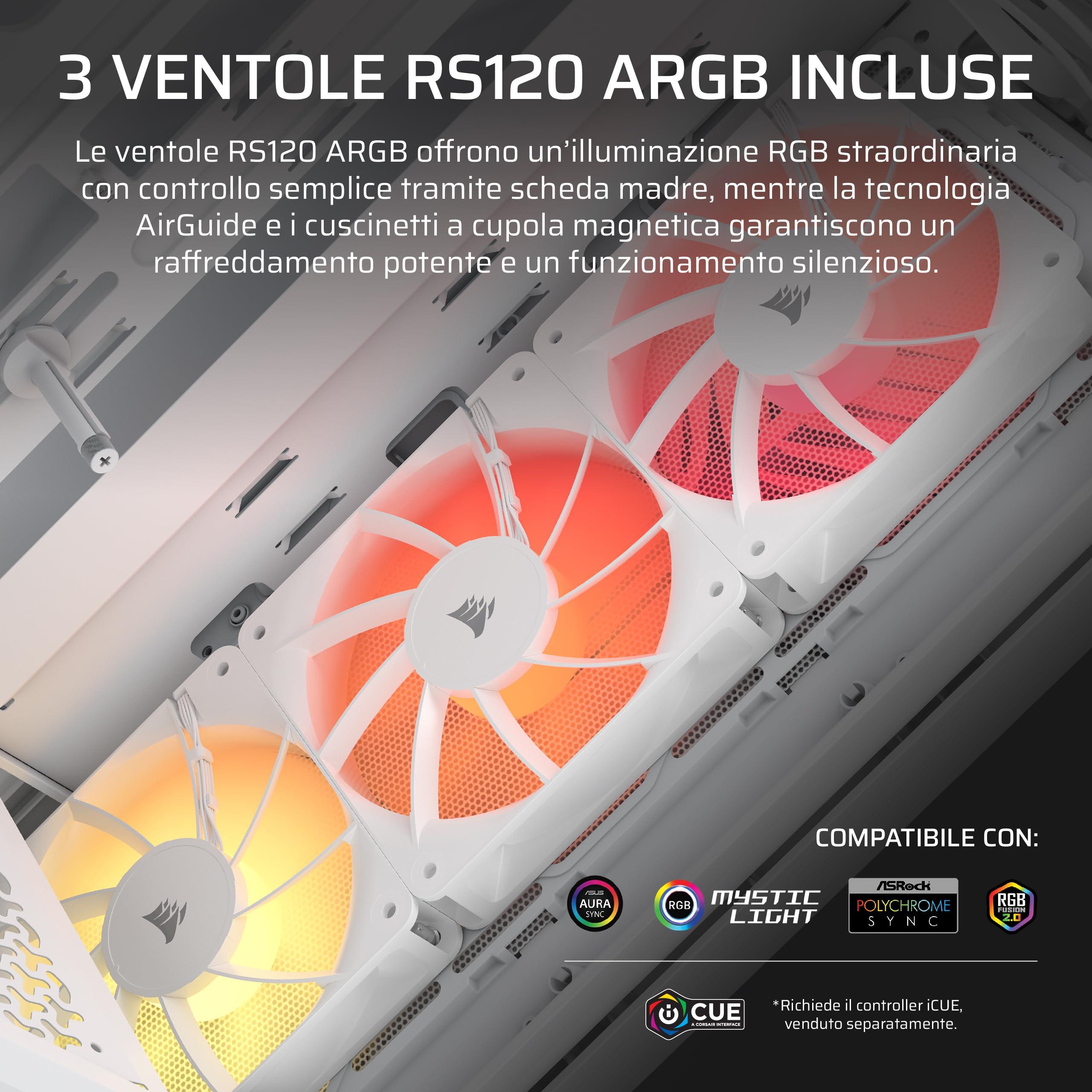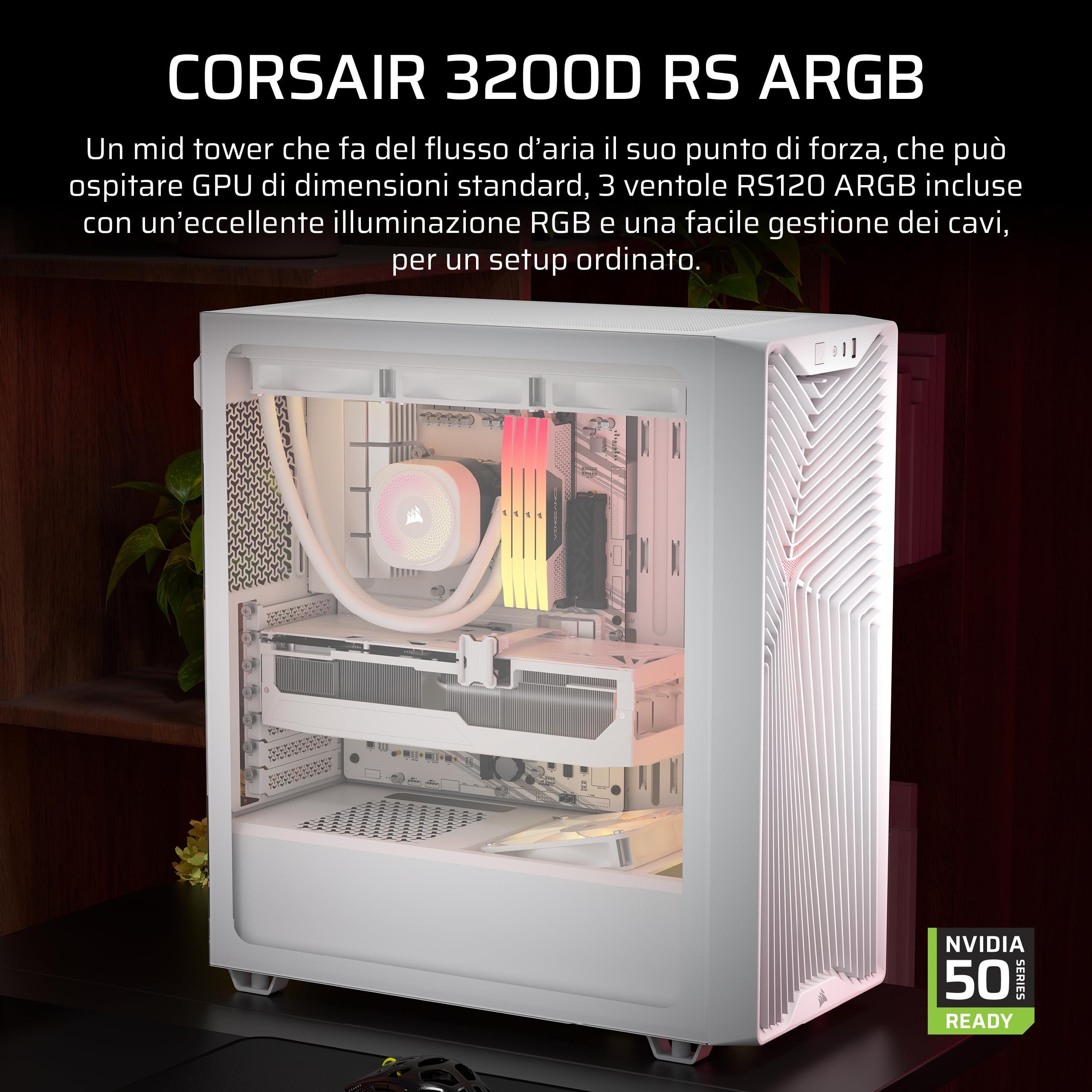 CORSAIR 3200D RS ARGB Case PC Mid Tower – 3 Ventole RS120 ARGB, Flusso D'aria Elevato, Compatibile Con Radiatore Da 360 mm, Compatibile Con Schede Madri Con Connessione Inversa – Bianco