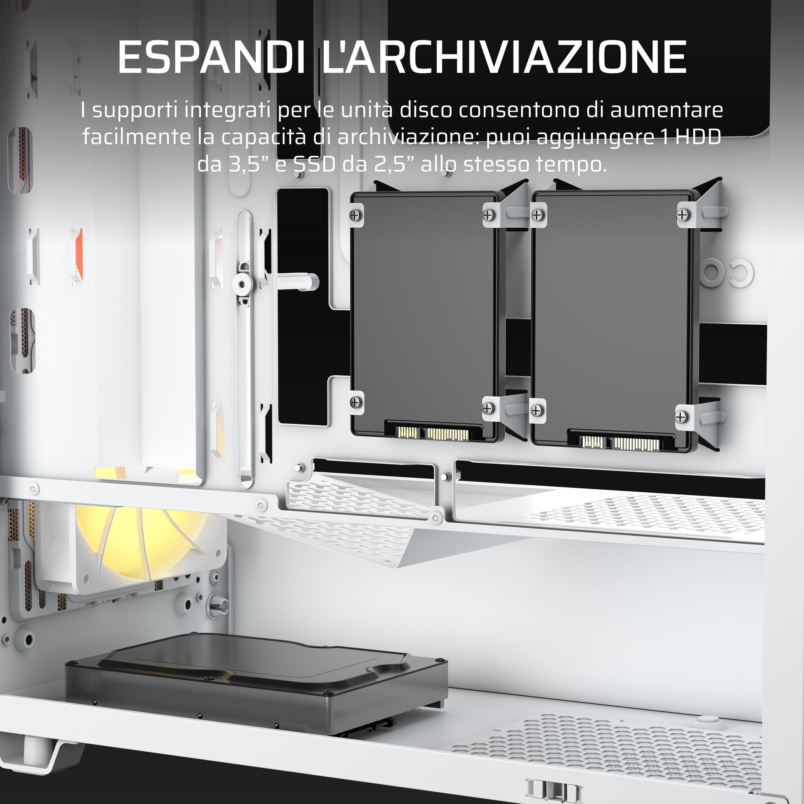 - Supporto per la tecnologia più recente: il 3200D RS ARGB è completamente compatibile con le schede madri a connessione inversa, include un braccio di stabilizzazione anti-sag per supportare GPU molto pesanti e offre una porta USB Type-C sul pannello I/O anteriore facilmente accessibile