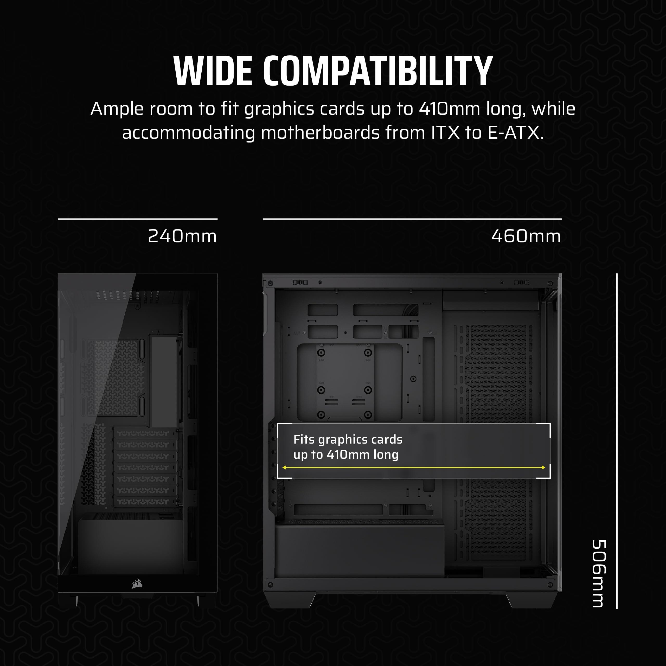 CORSAIR 3500X Mid-Tower ATX Case per PC - Vetro Temperato Panoramico - Compatibile con Scheda Madre a Connessione Inversa - Nessuna Ventola Inclusa - Nero