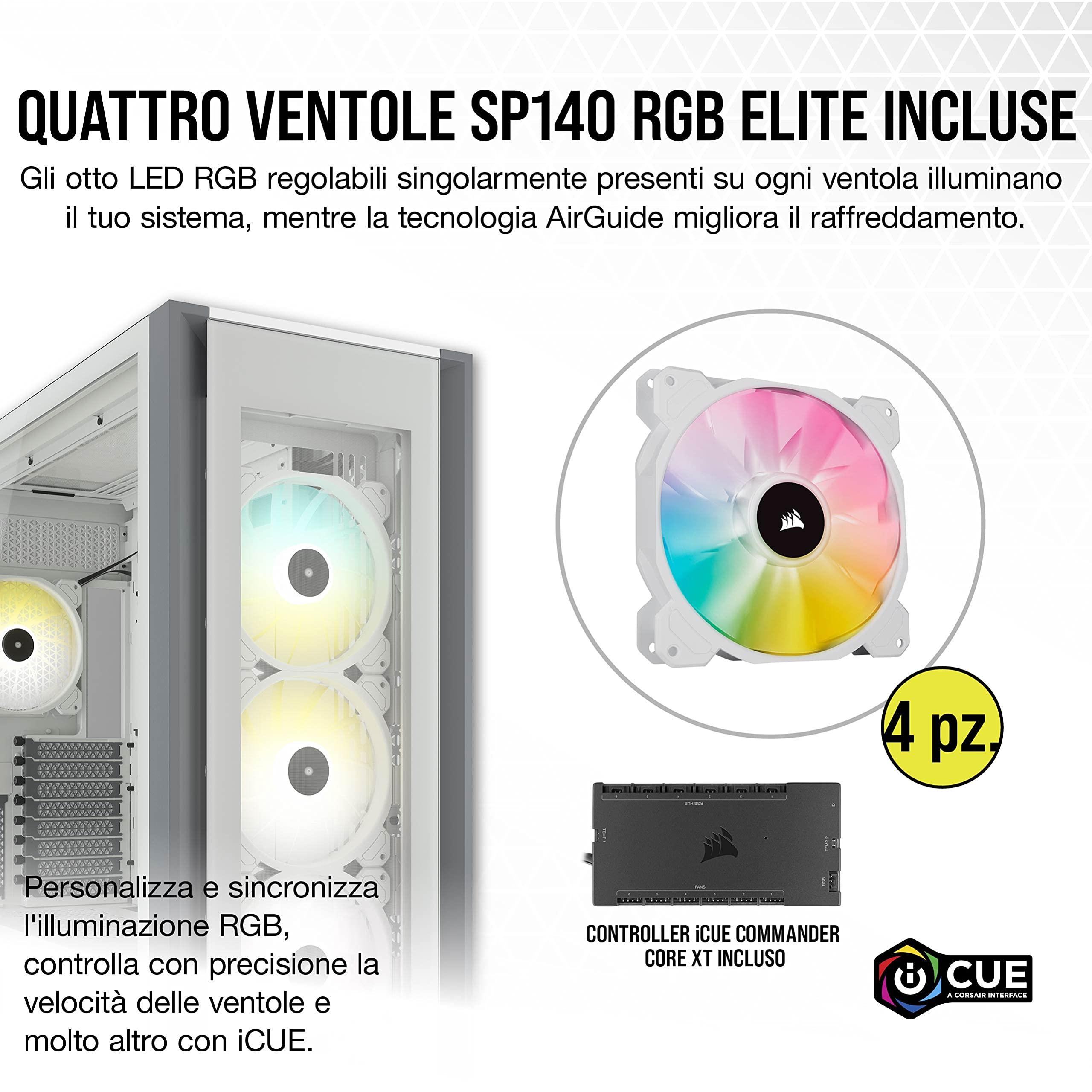 - Quattro ventole RGB da 140 mm incluse: le ventole PWM CORSAIR SP RGB ELITE sono dotate ciascuna di otto LED RGB regolabili singolarmente