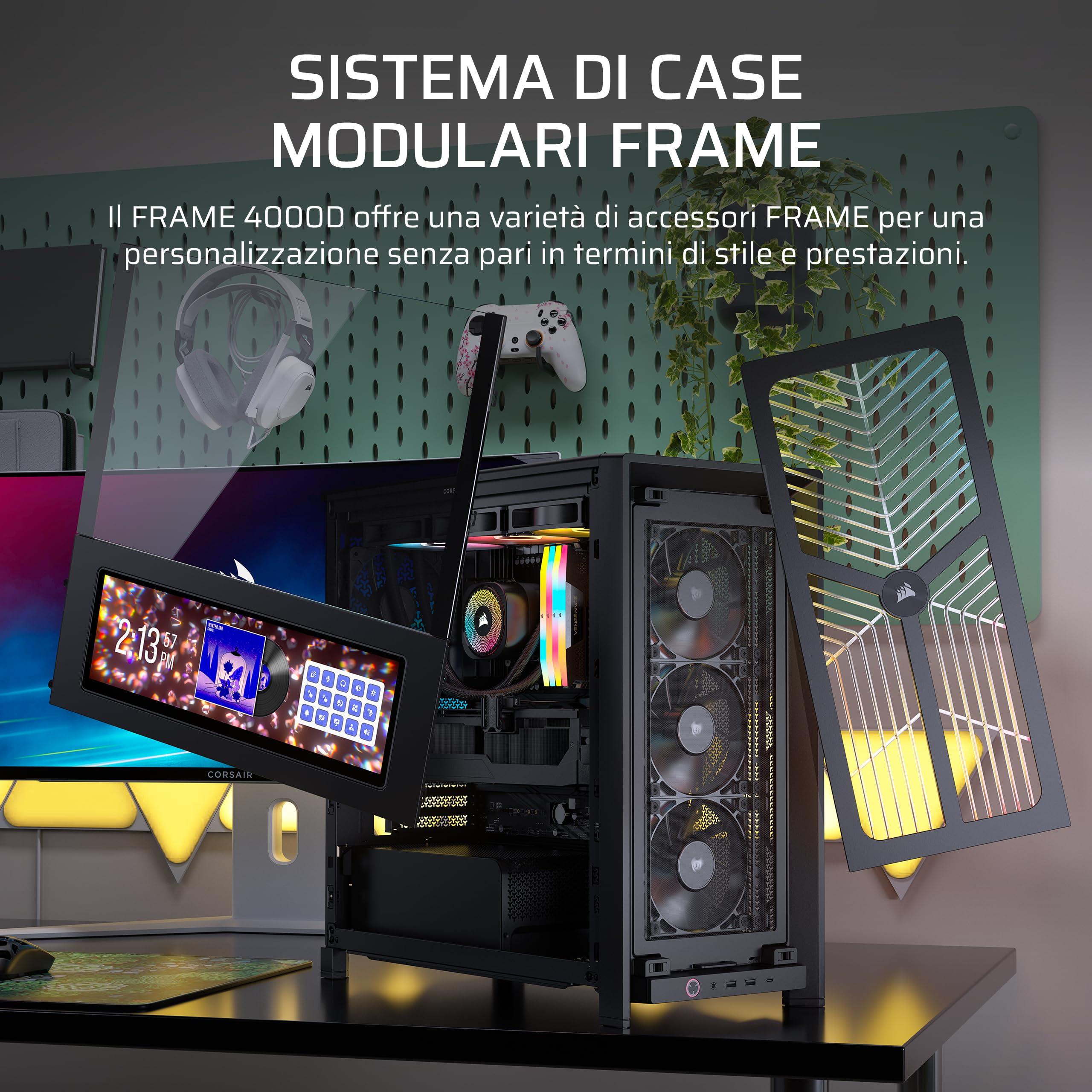 - Sistema di case modulari FRAME: Il rivoluzionario sistema FRAME dà un nuovo significato alla parola personalizzazione. Desideri sostituire il vassoio della scheda madre con uno in alluminio? Desideri sostituire il pannello anteriore o la protezione dell'alimentatore? Oggi puoi. Un case che può adattarsi e crescere in base alle tue esigenze (o anche al tuo umore).