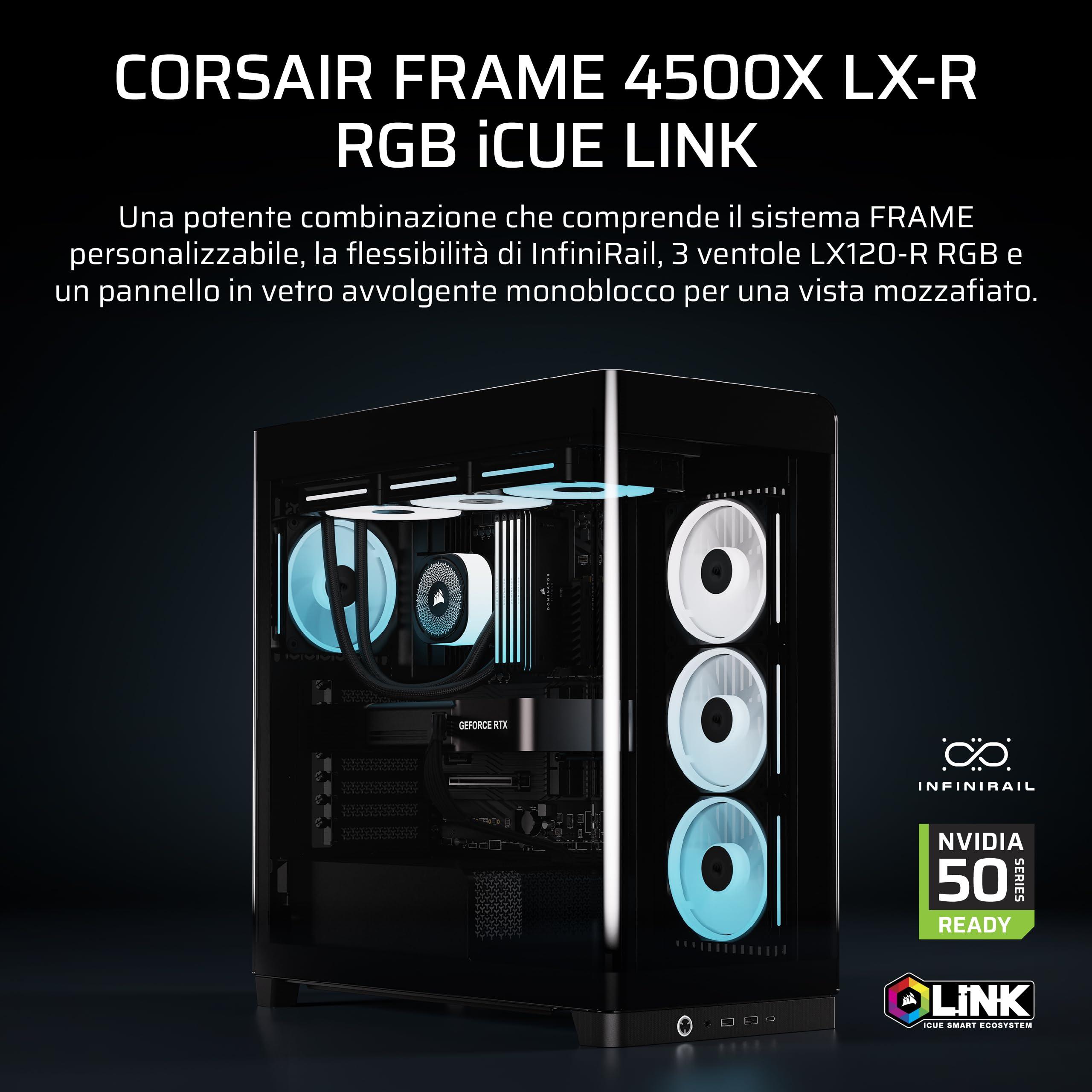 CORSAIR FRAME 4500X LX-R RGB LINK Case Mid-Tower per PC con Vetro Panoramico – Sistema di Montaggio InfiniRail, Anti-Sag della GPU, Include 3 Ventole LX120R RGB LINK – Nero