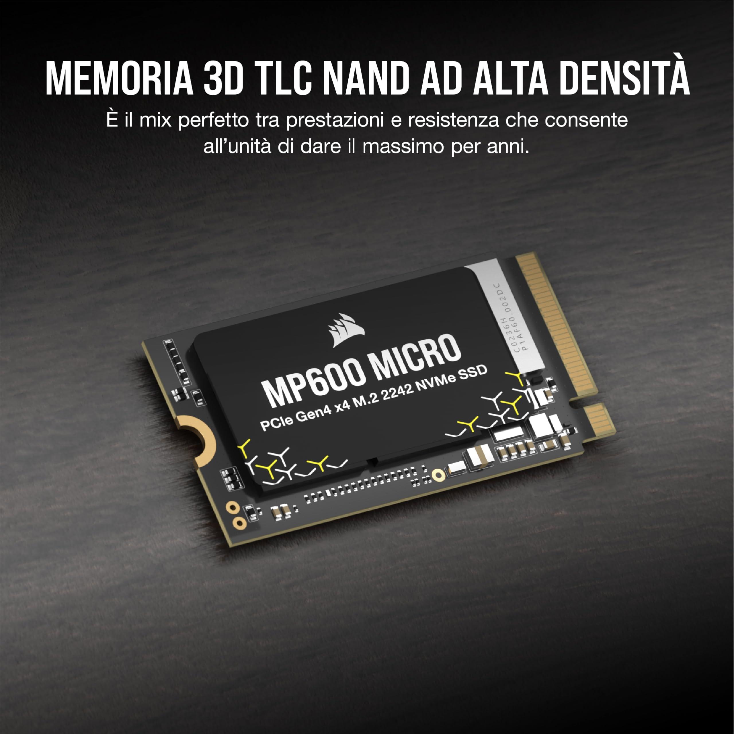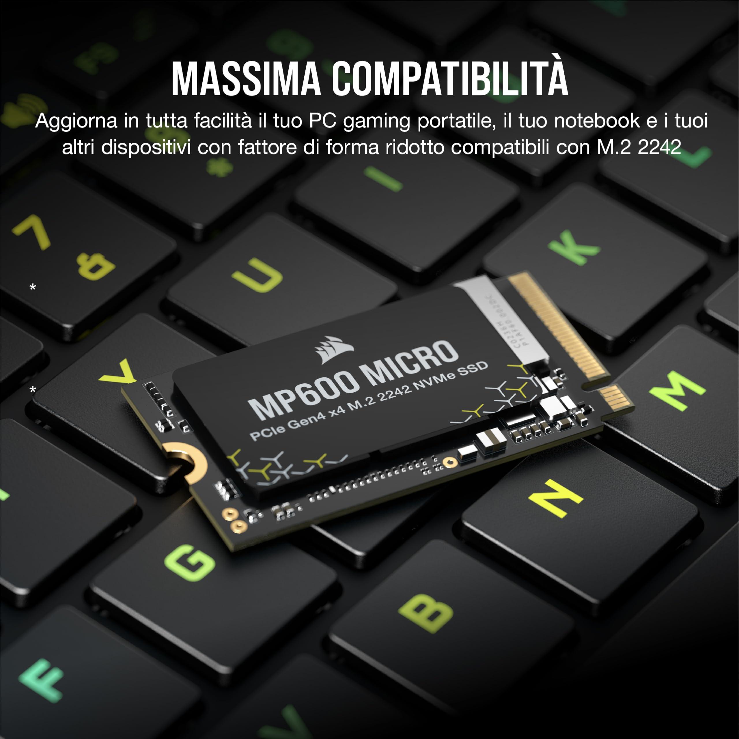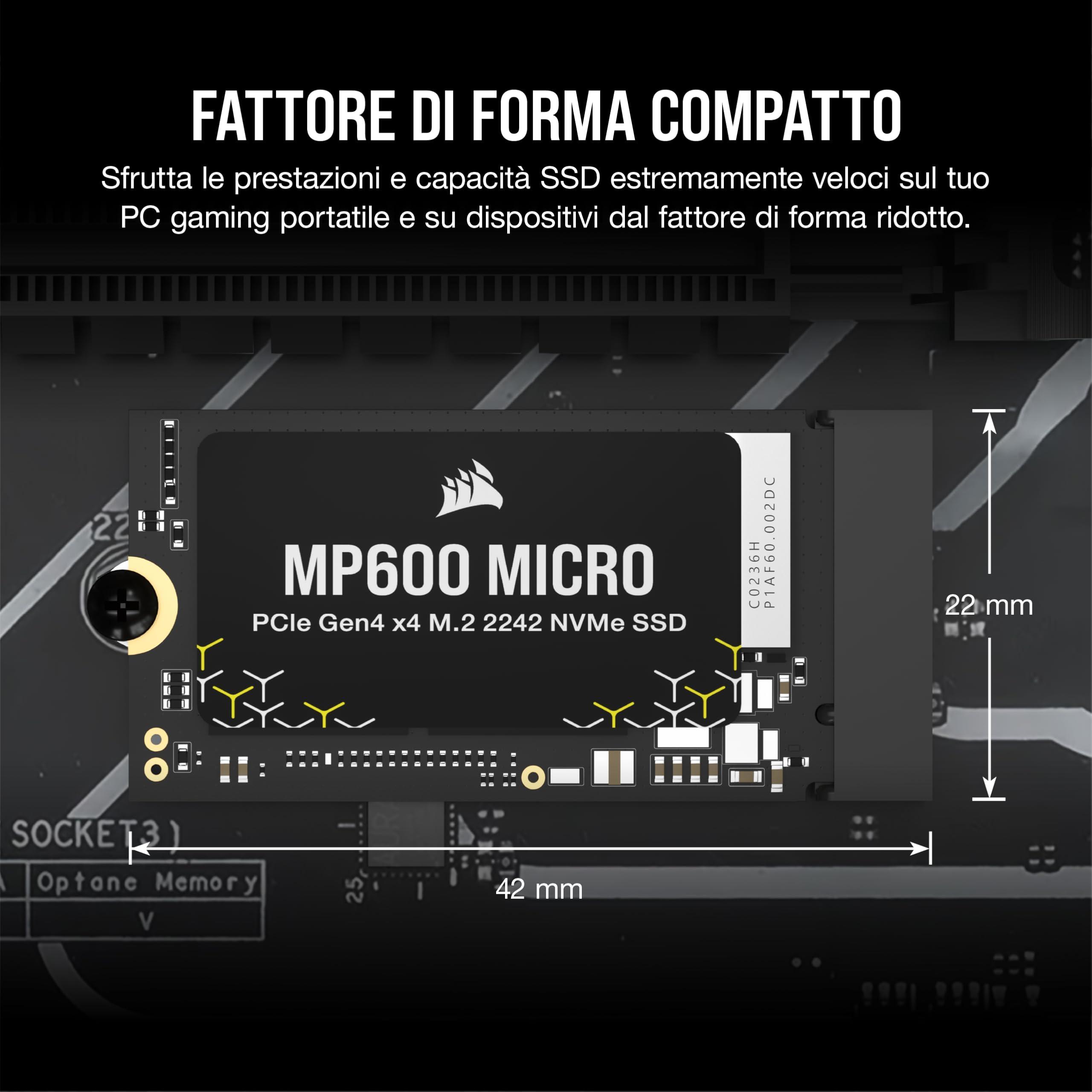 Corsair MP600 MICRO 2TB M.2 NVMe PCIe x4 Gen4 SSD – M.2 2242 – Fino a 7.000 MB/sec in Lettura Sequenziale – Compatibile con i Computer Portatili Lenovo Legion Go e Thin PCIe 4.0 – Nero