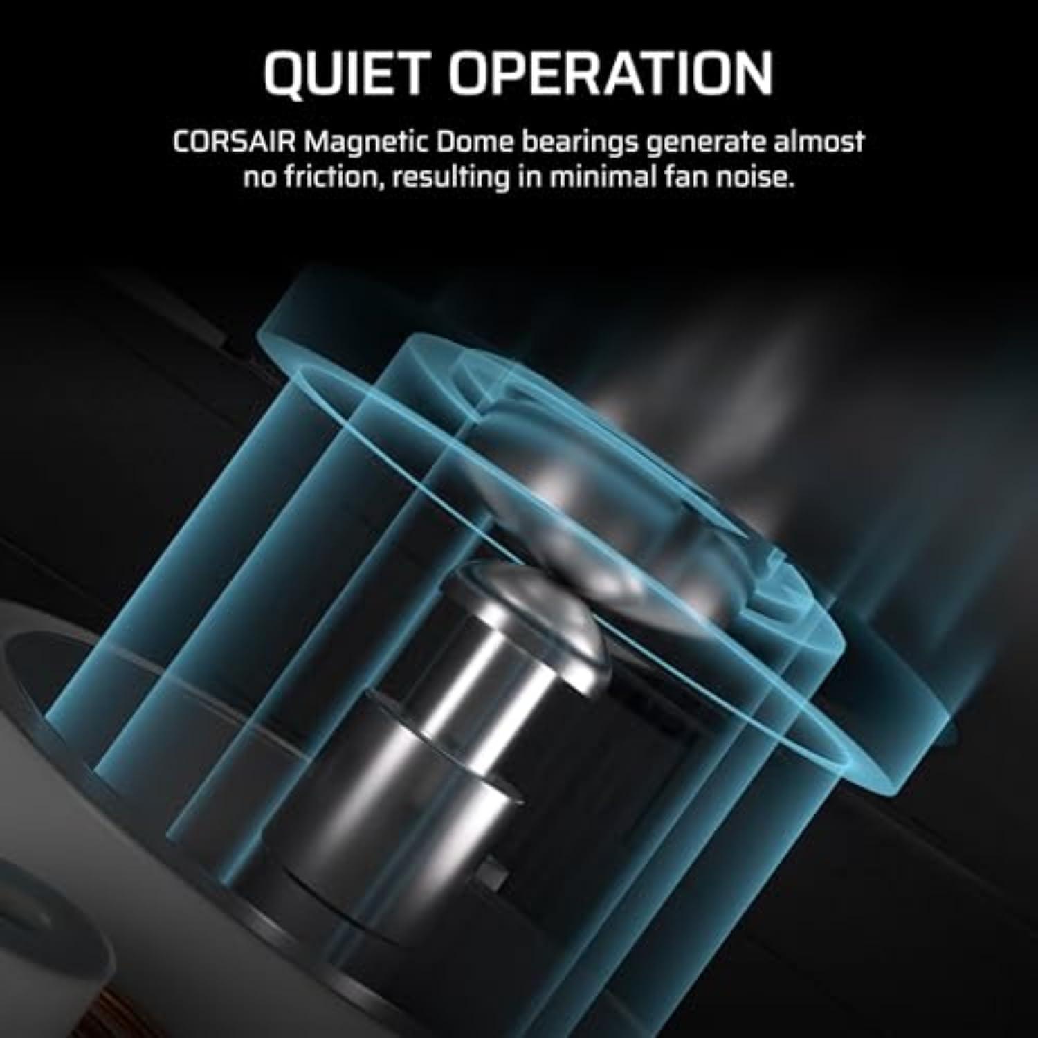 - Tecnologia CORSAIR AirGuide: Le alette antivortice dirigono il flusso d'aria verso i componenti più caldi per un raffreddamento concentrato, spingendo l'aria nella direzione desiderata quando viene montata su un radiatore o un dissipatore di calore