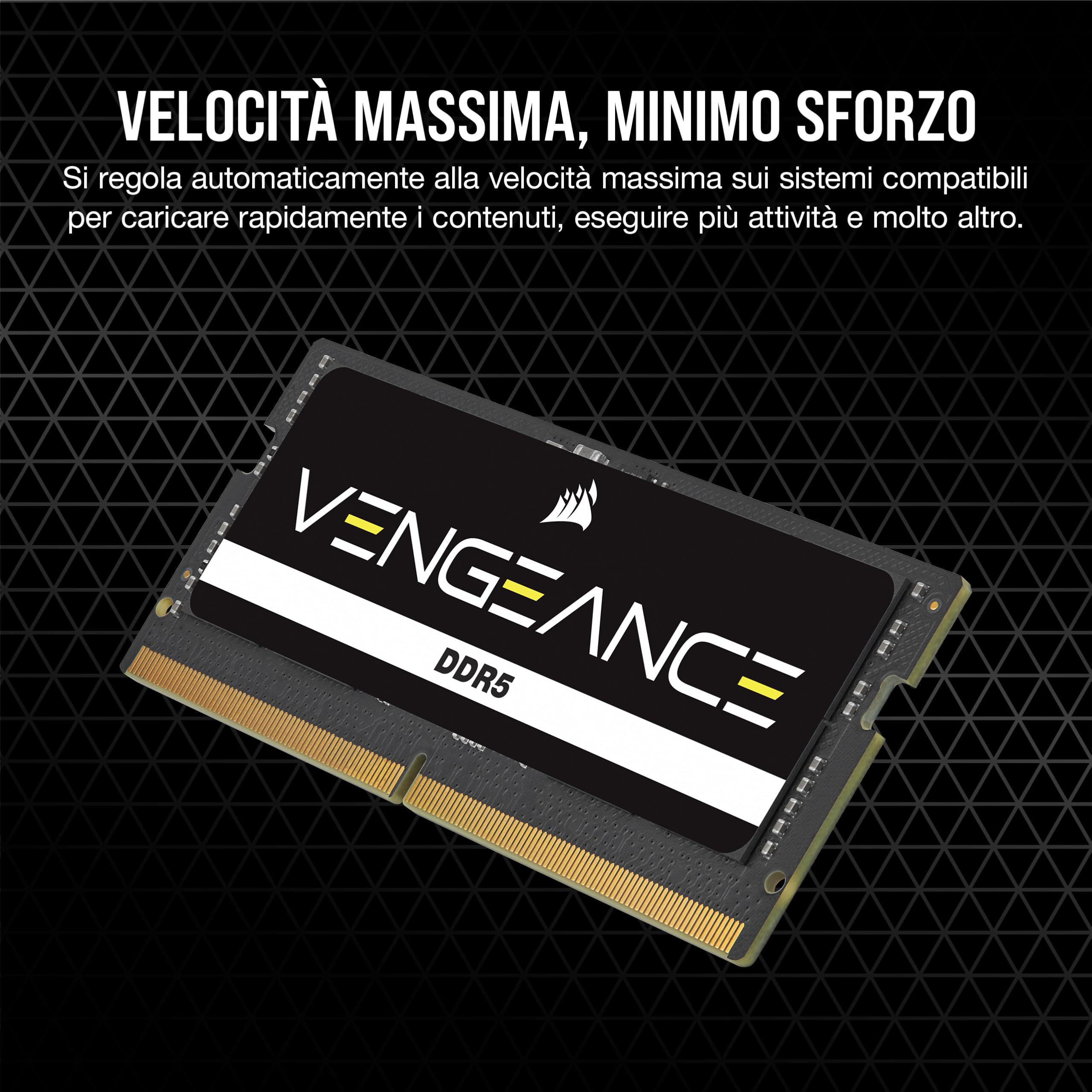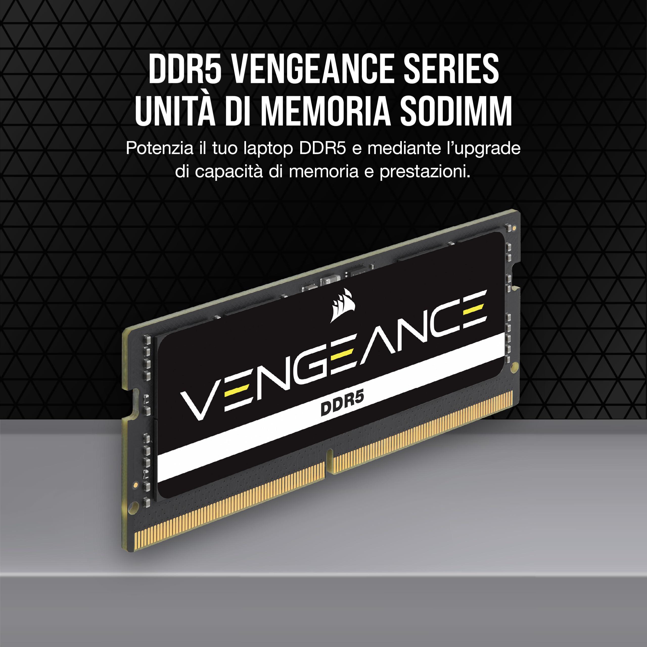 CORSAIR VENGEANCE SODIMM DDR5 RAM 48GB (2x24GB) 5600MHz CL48-48-48-90 1.10V Intel XMP 3.0 Memoria per Laptop – Nero (CMSX48GX5M2A5600C48)