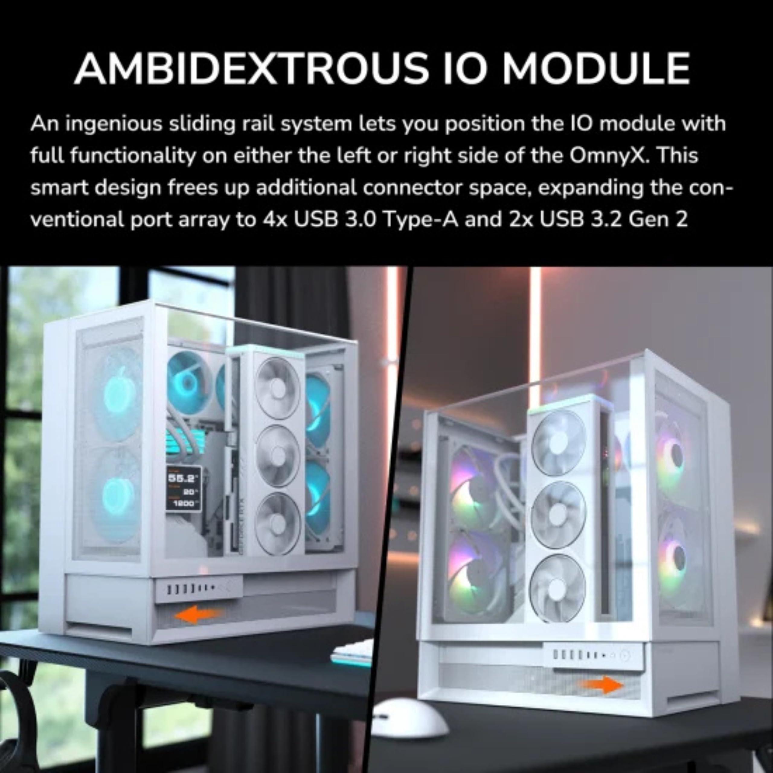 Il tuo Build. La tua Visione. Qualsiasi lato ti piace. OmnyX ti dà la potenza di giocare, creare ed eseguire con una flessibilità senza precedenti. Sperimenta la vera libertà di orientamento e il massimo flusso d'aria con il rivoluzionario sistema di flusso dinamico omnidirezionale di COUGAR. Prendi una parte e mostra il tuo capolavoro.