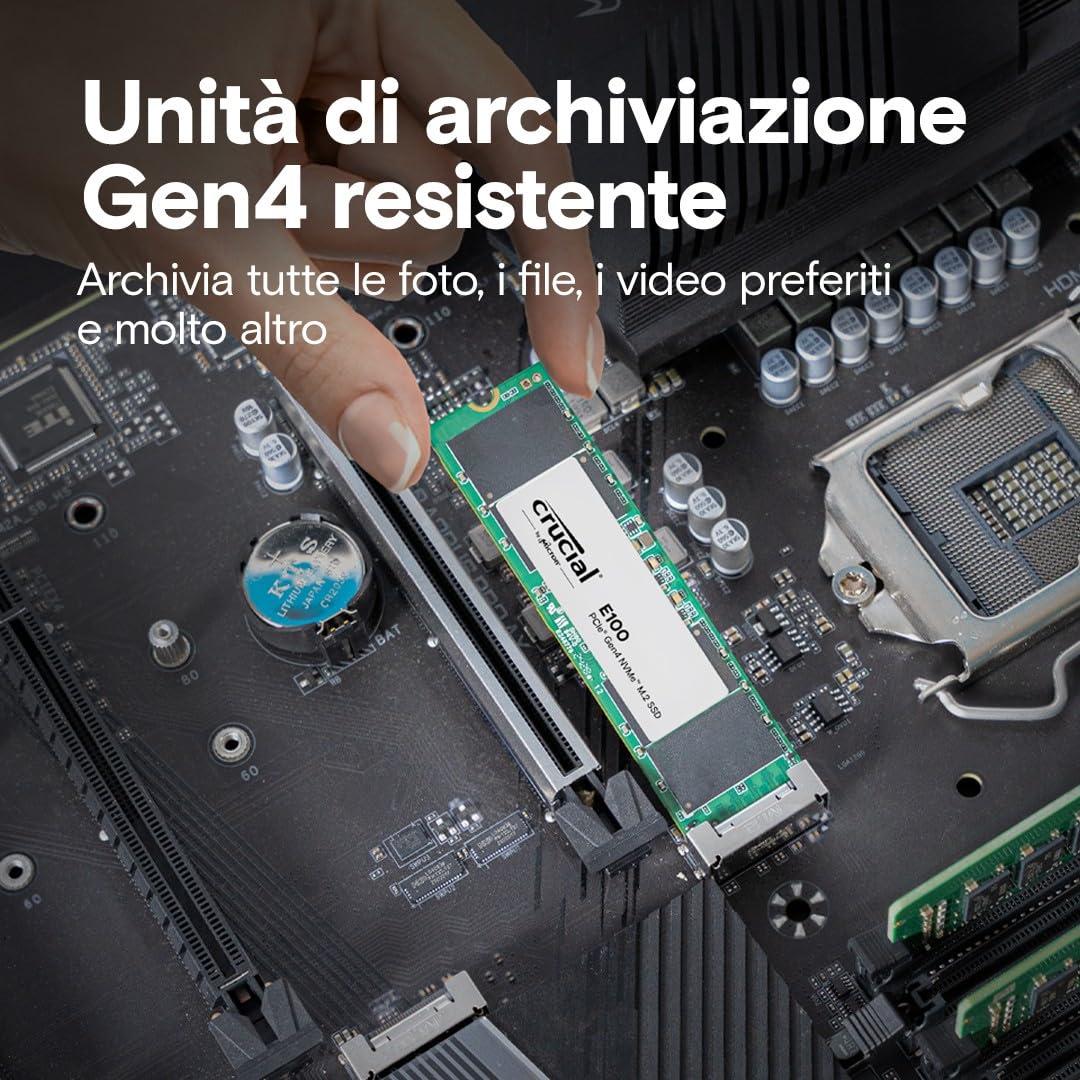 Crucial E100 2TB PCIe Gen4 NVMe M.2 SSD Interno, Fino a 5.000 MB/s, Compatibile con Notebook e PC Desktop - CT2000E100SSD8