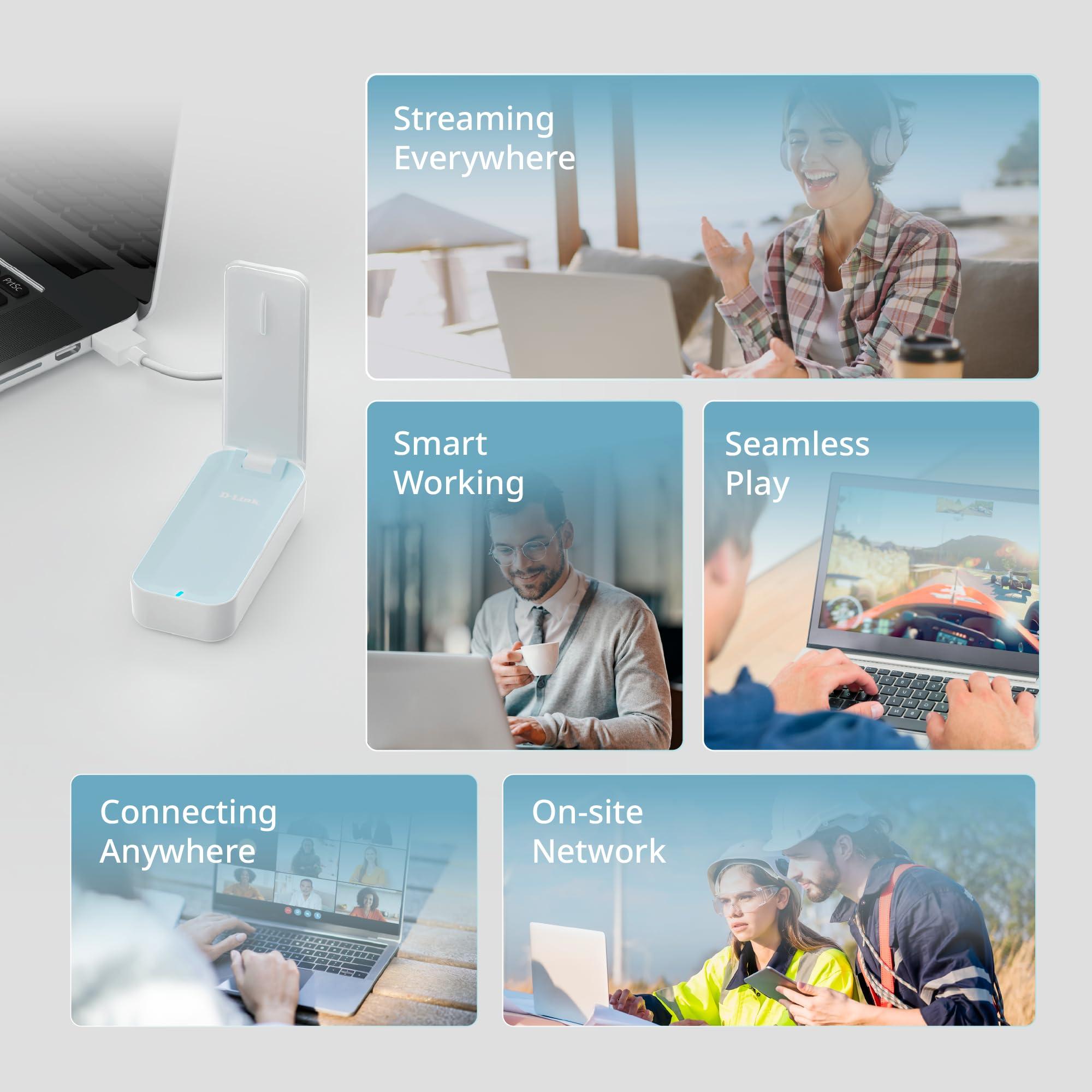 D-Link D501 Adattatore USB 5G NR – Internet mobile 5G/4G LTE ad alta velocità, Plug & Play, USB-C, Antenna pieghevole, Nano SIM, Windows/macOS/Linux