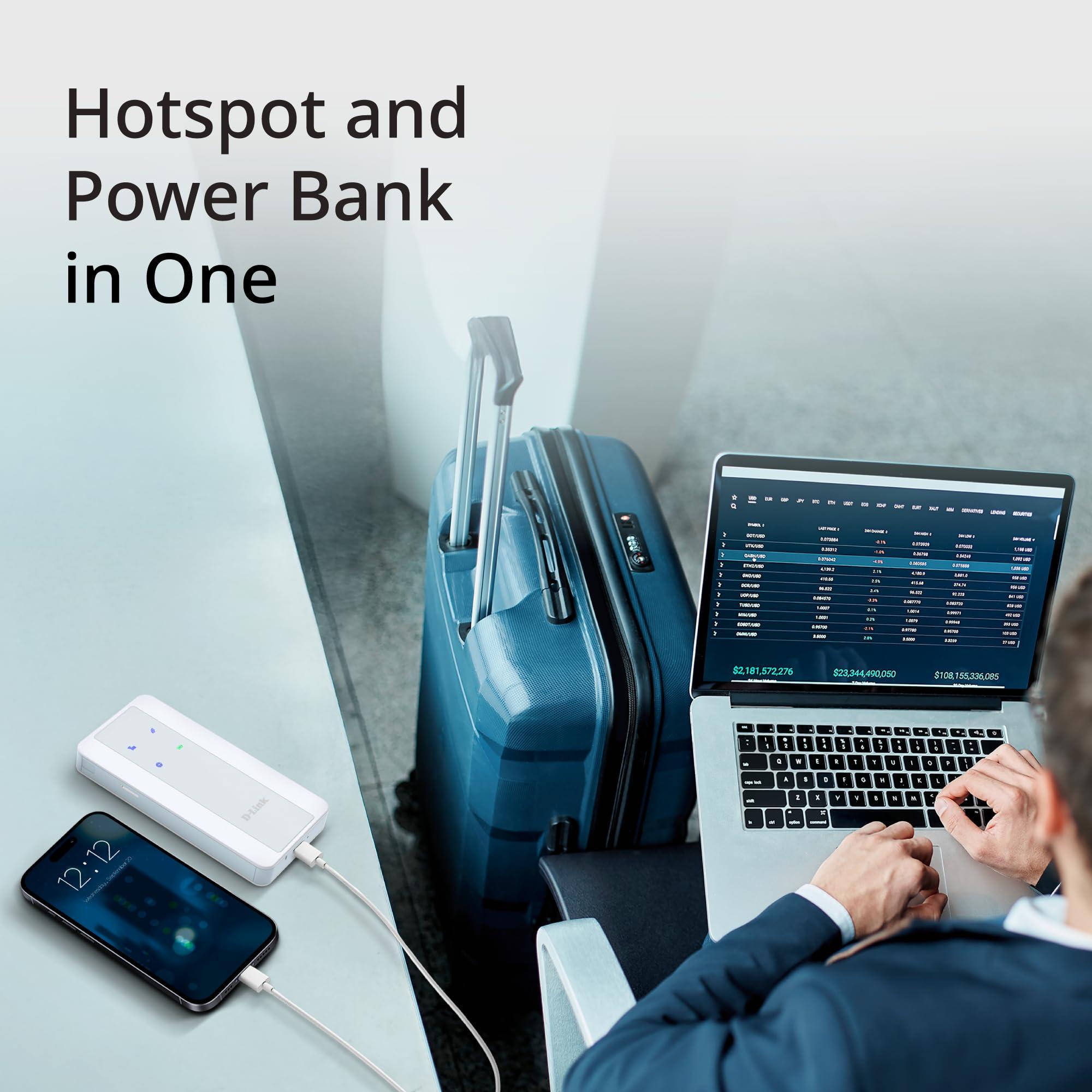 D-Link F518 Hotspot Mobile 5G NR AX1800 Wi-Fi 6 – Router 5G Portatile con Funzione Power Bank, Batteria a Lunga Durata, Wi-Fi Dual Band, Sicurezza WPA3