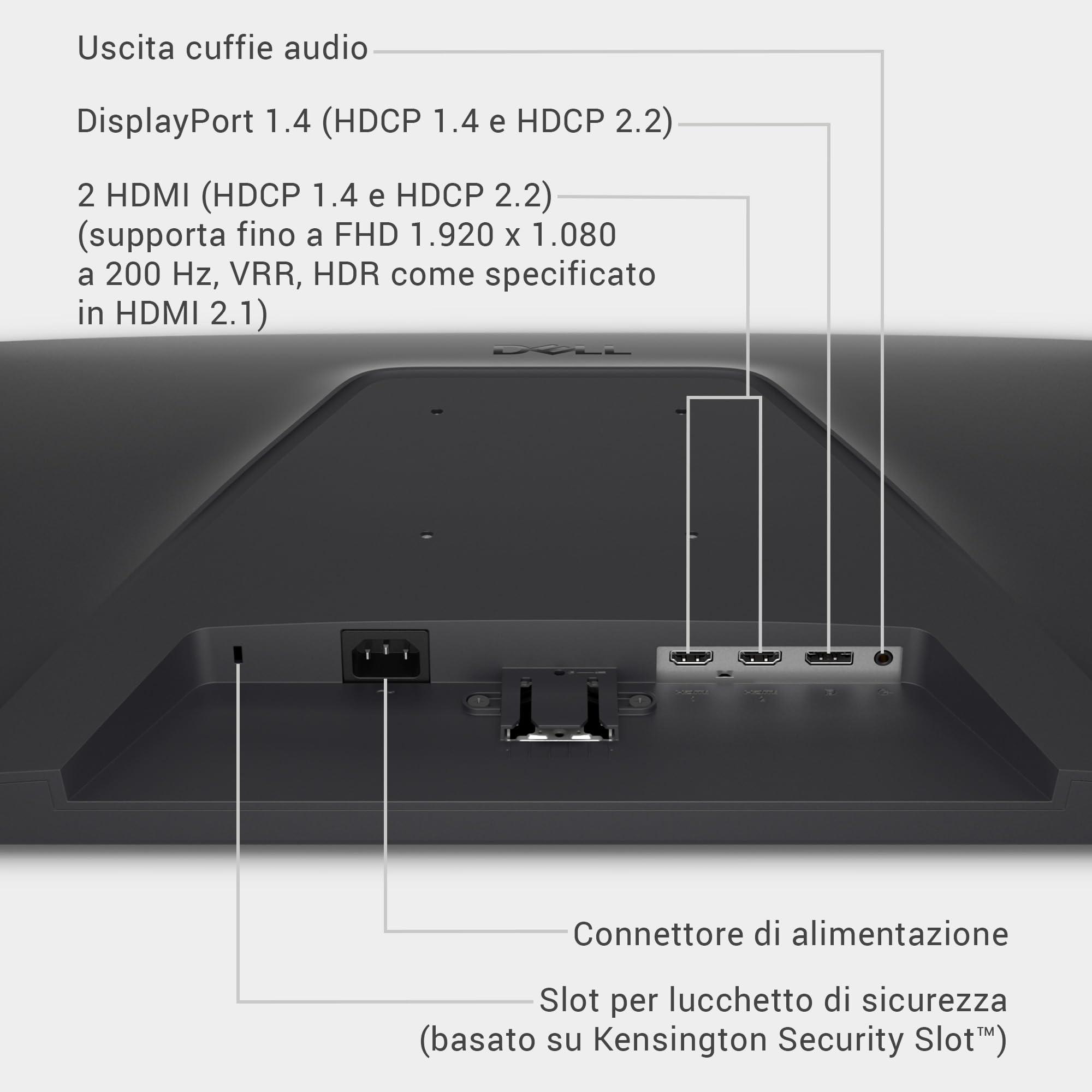 Dell 24 Monitor Gaming - SE2425HG, Full HD (1920x1080), 200Hz, Fast IPS, 1ms, AMD FreeSync Premium, 99% sRGB, VESA (100x100mm), DisplayPort, 2 HDMI, 3 Anni di Garanzia, Nero