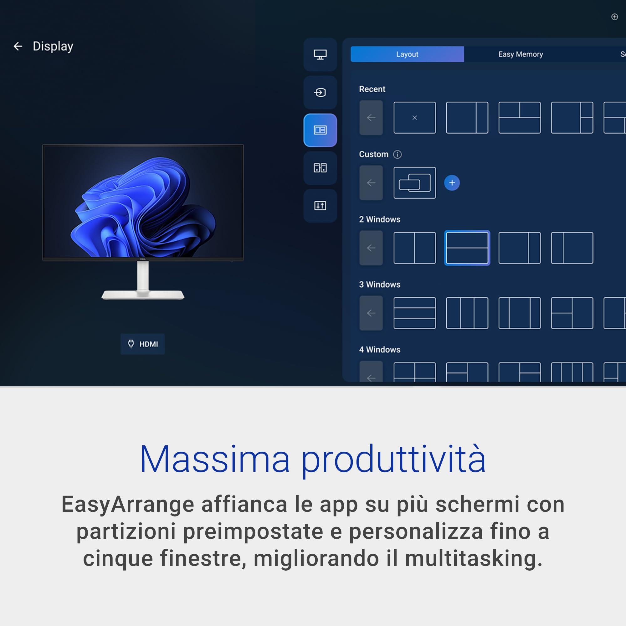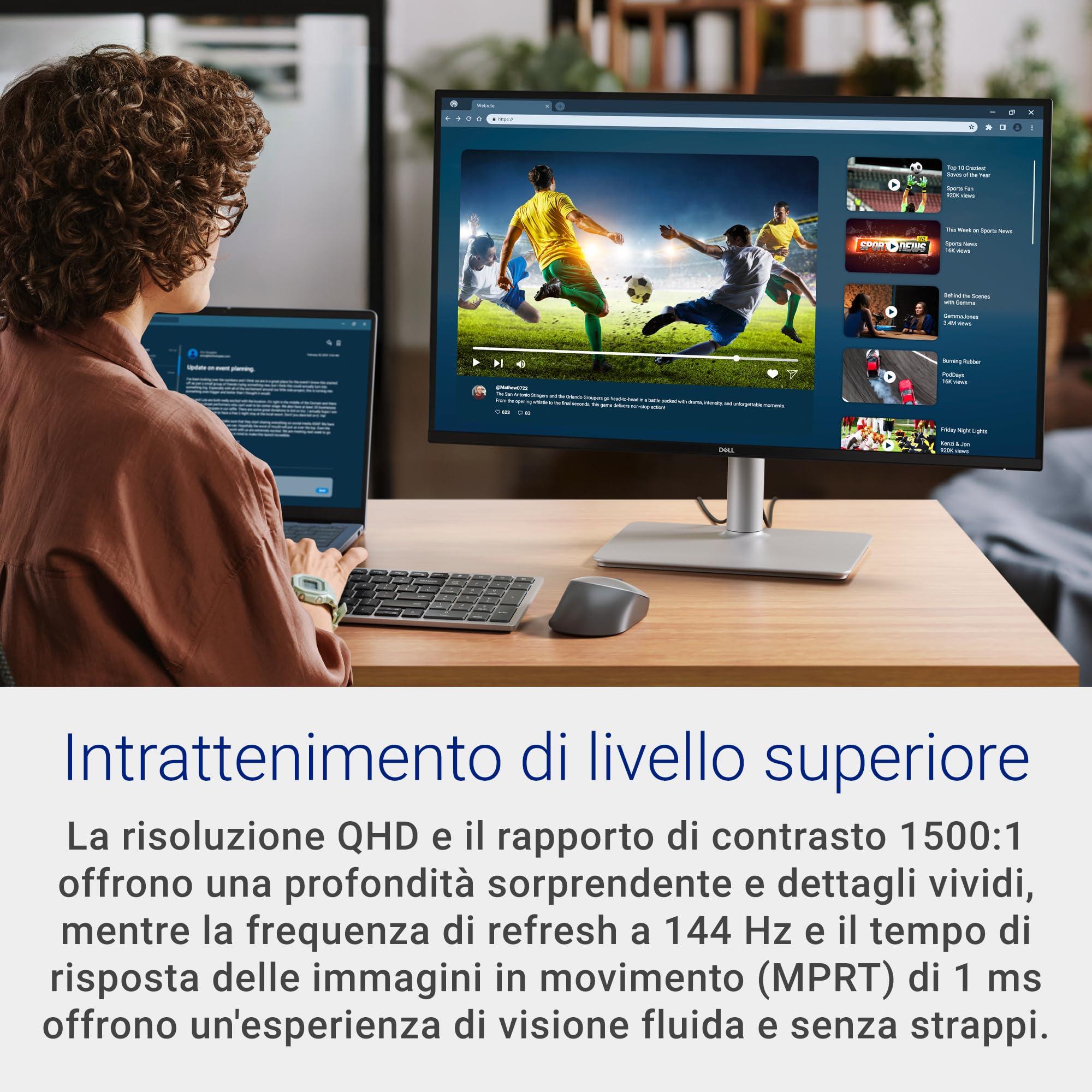 Dell 27 Plus Monitor - S2725DSM, QHD (2560x1440), 144Hz, IPS, 1ms MPRT, AMD FreeSync, 99% sRGB, Regolabile in Altezza, Altoparlanti integrati, DisplayPort, HDMI, 3 Anni di Garanzia, Bianco