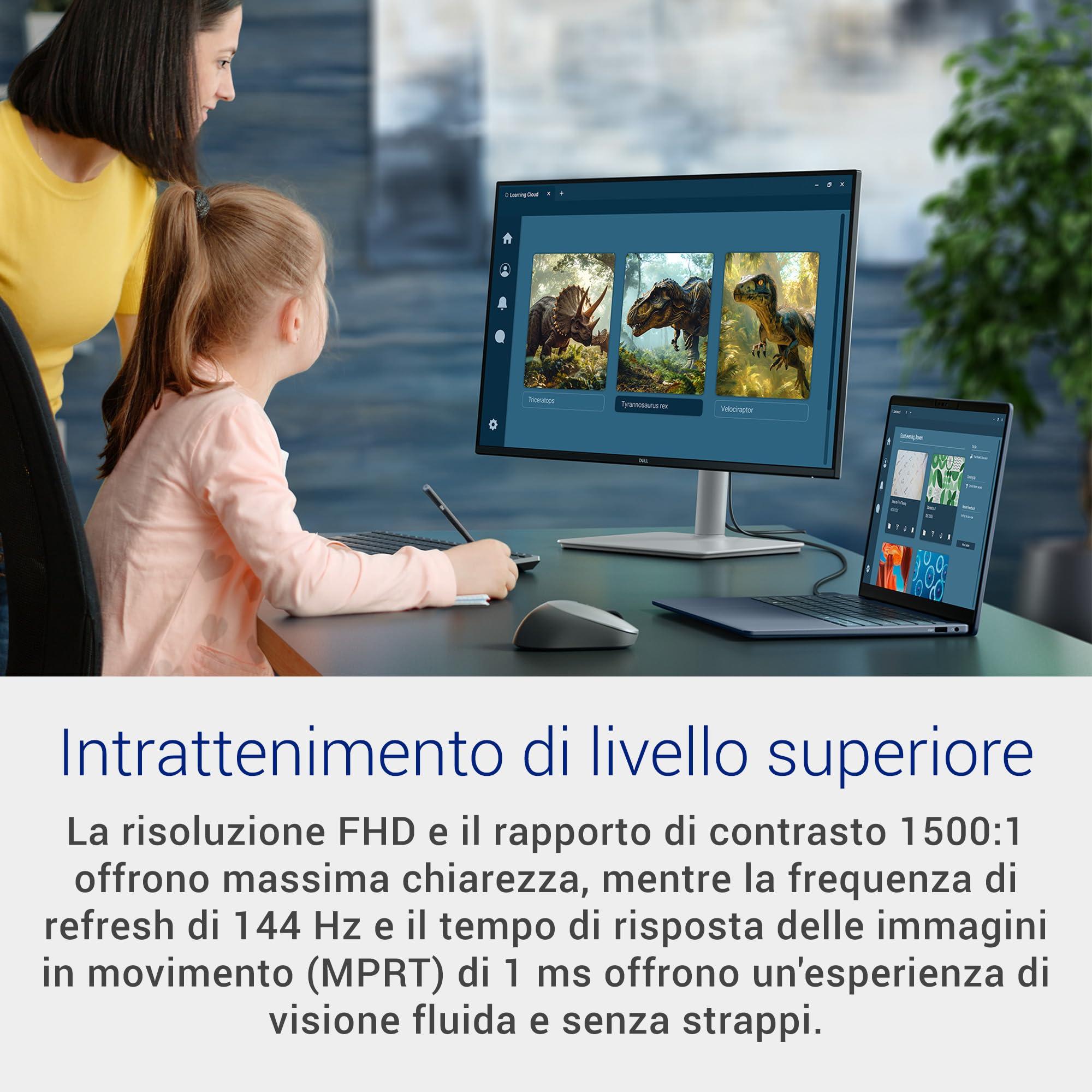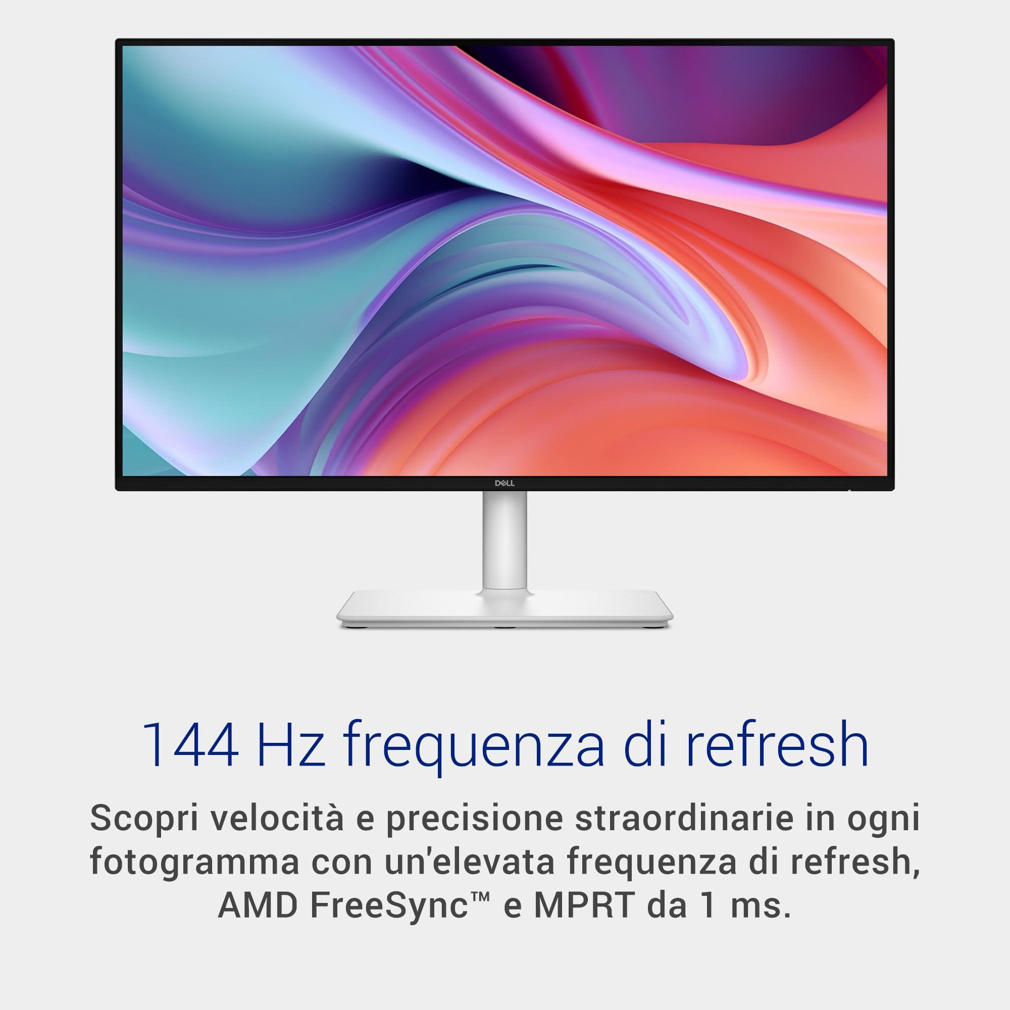 Dell 27 Plus Monitor - S2725HSM, Full HD (1920x1080), 144Hz, IPS, 1ms MPRT, AMD FreeSync, 99% sRGB, Regolabile in Altezza, Altoparlanti integrati, 2 HDMI, 3 Anni di Garanzia, Bianco