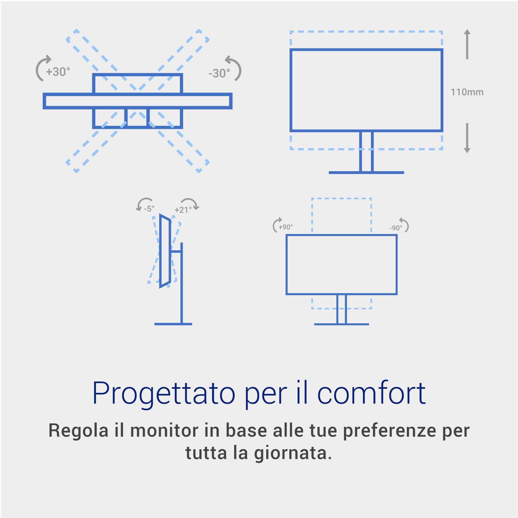 - COLORI VIVIDI & AMPI ANGOLI DI VISIONE – Copertura 99% sRGB, luminosità 300 cd/m² e contrasto 1500:1 per immagini realistiche e uniformi fino a 178°.