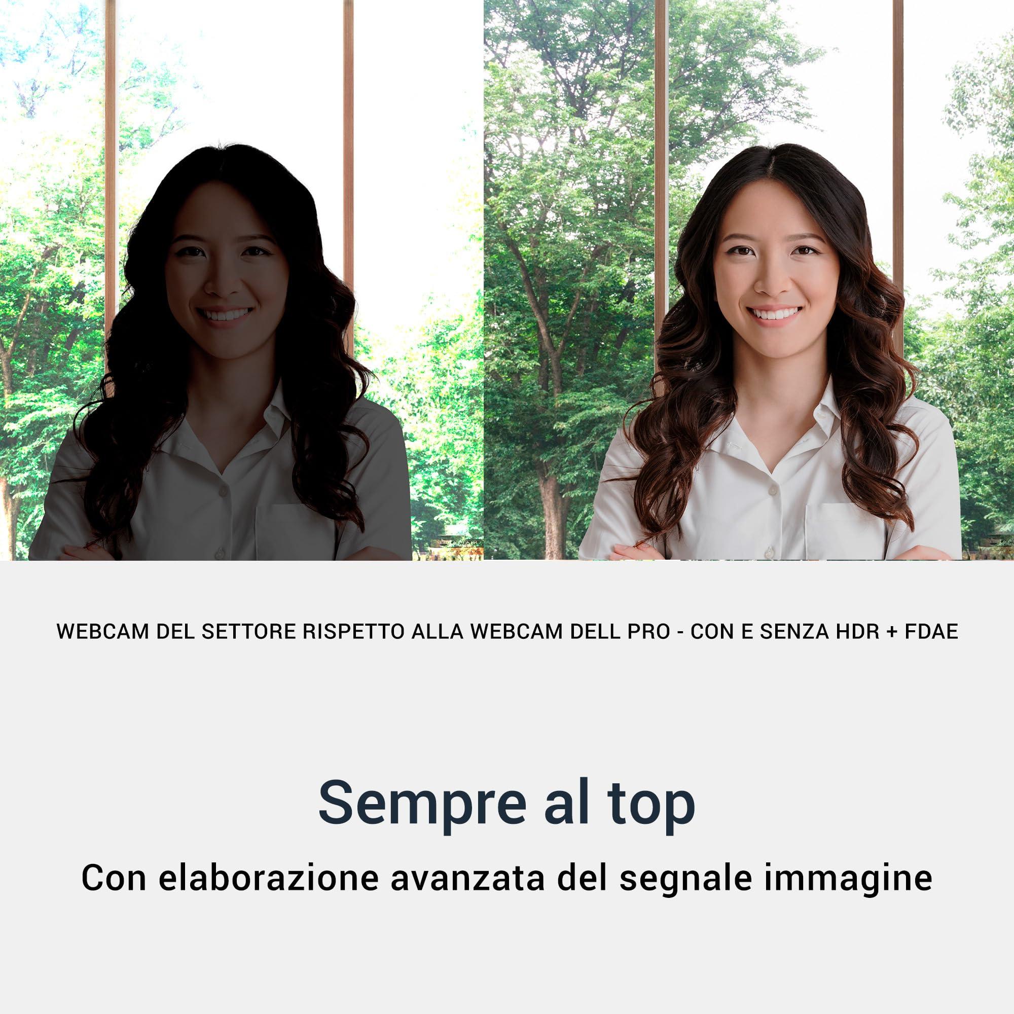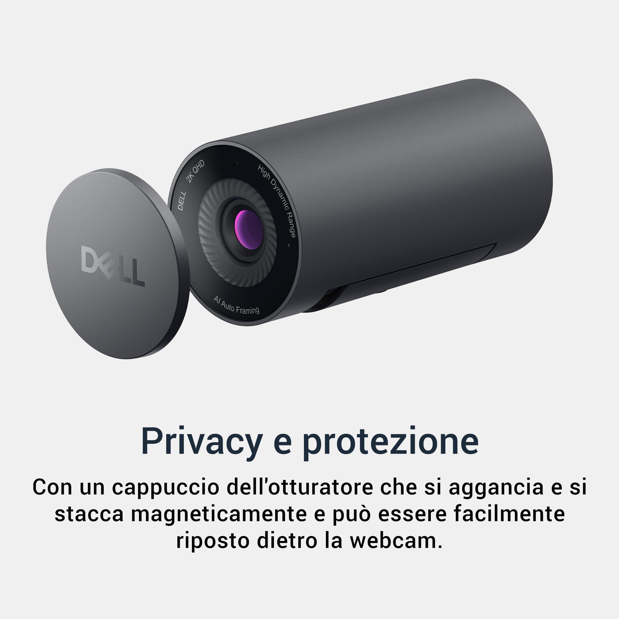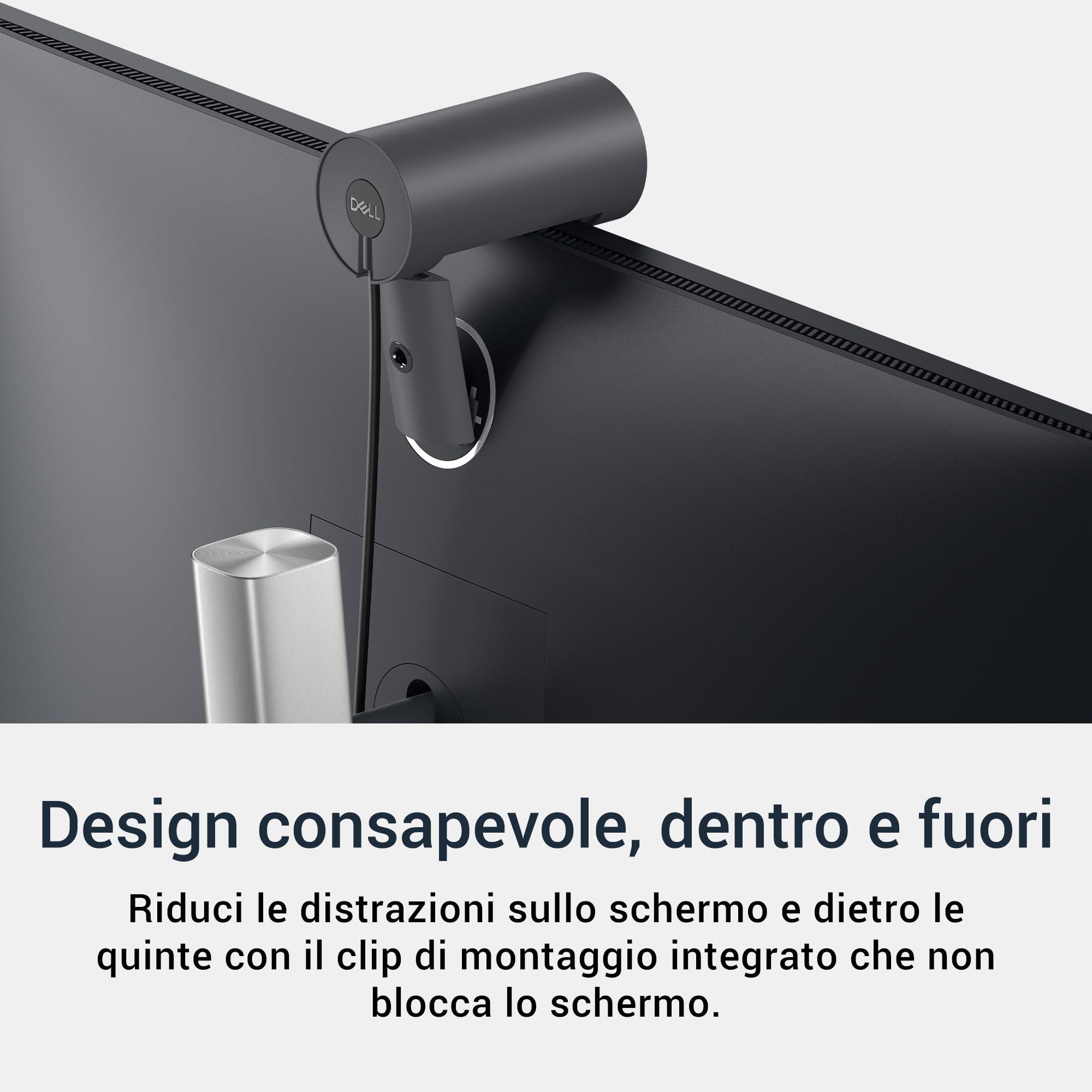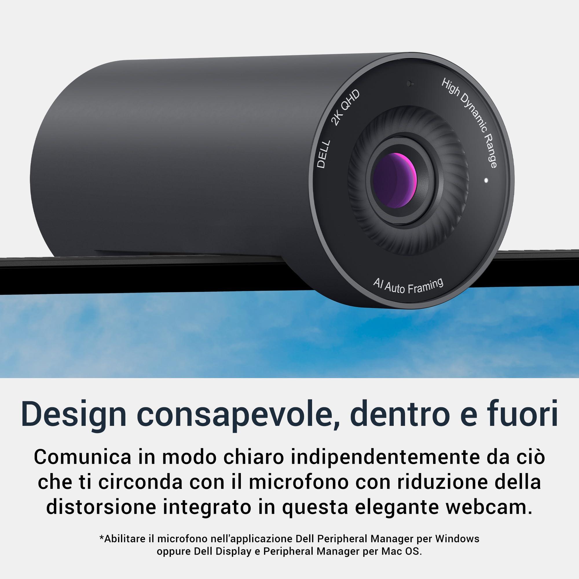 Dell Pro Webcam WB5023 Webcam 2K QHD, HDR, AI Auto Framing, Microfono con Riduzione del Rumore, Certificata per Microsoft Teams e Zoom, Compatibile con Windows e Mac Nero