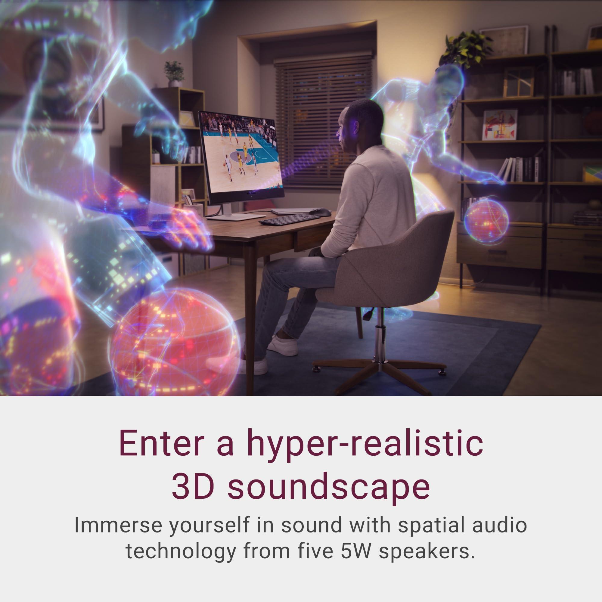 - Esperienza audio super realistica: Immergiti nel suono con cinque altoparlanti spaziali con tecnologia audio spaziale da 5 W. Attivata dal tracciamento della testa basato sull'intelligenza artificiale, questa funzione tiene traccia dei tuoi movimenti con estrema precisione.
