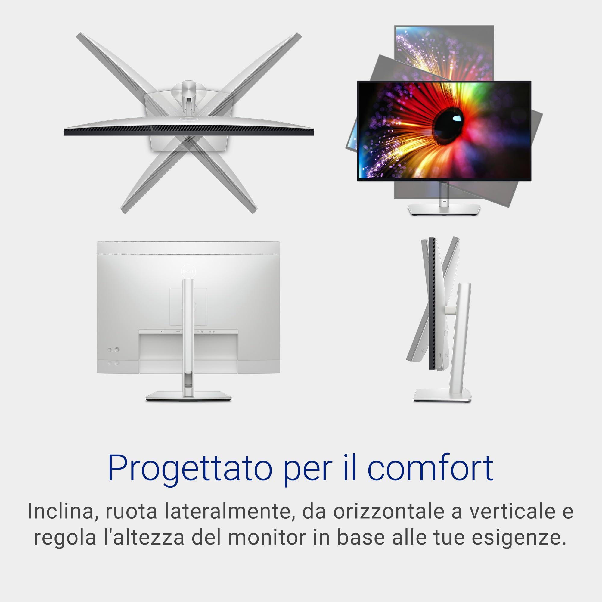 Dell U2724D UltraSharp 27" QHD (2560x1440) Monitor, 120Hz, IPS Black, 5ms, 98% DCI-P3, 2x USB-C, 2x DisplayPort, HDMI, 3x USB, 3 Anni di Garanzia, Argento