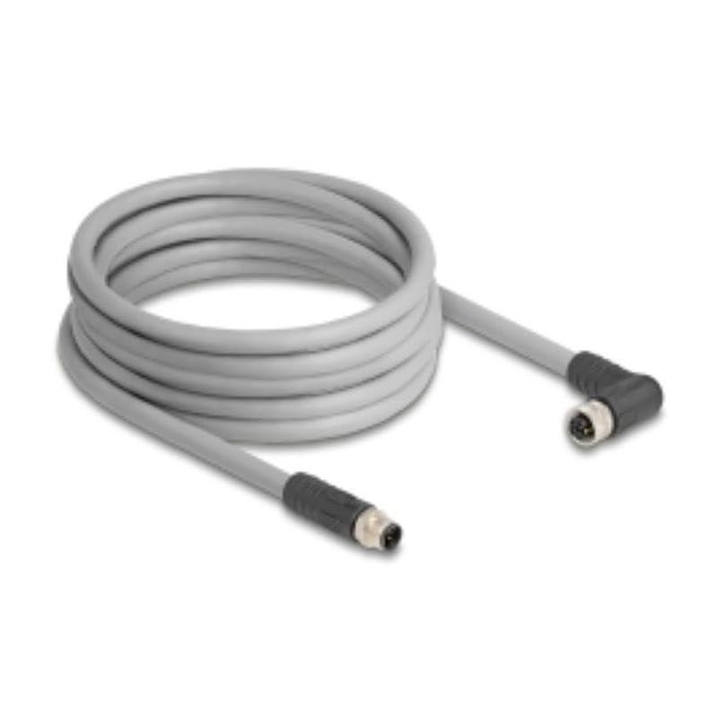 Delock M12 Kabel L-kodiert 5 Pin Stecker gerade zu Buchse rechts gewinkelt PUR (80545)