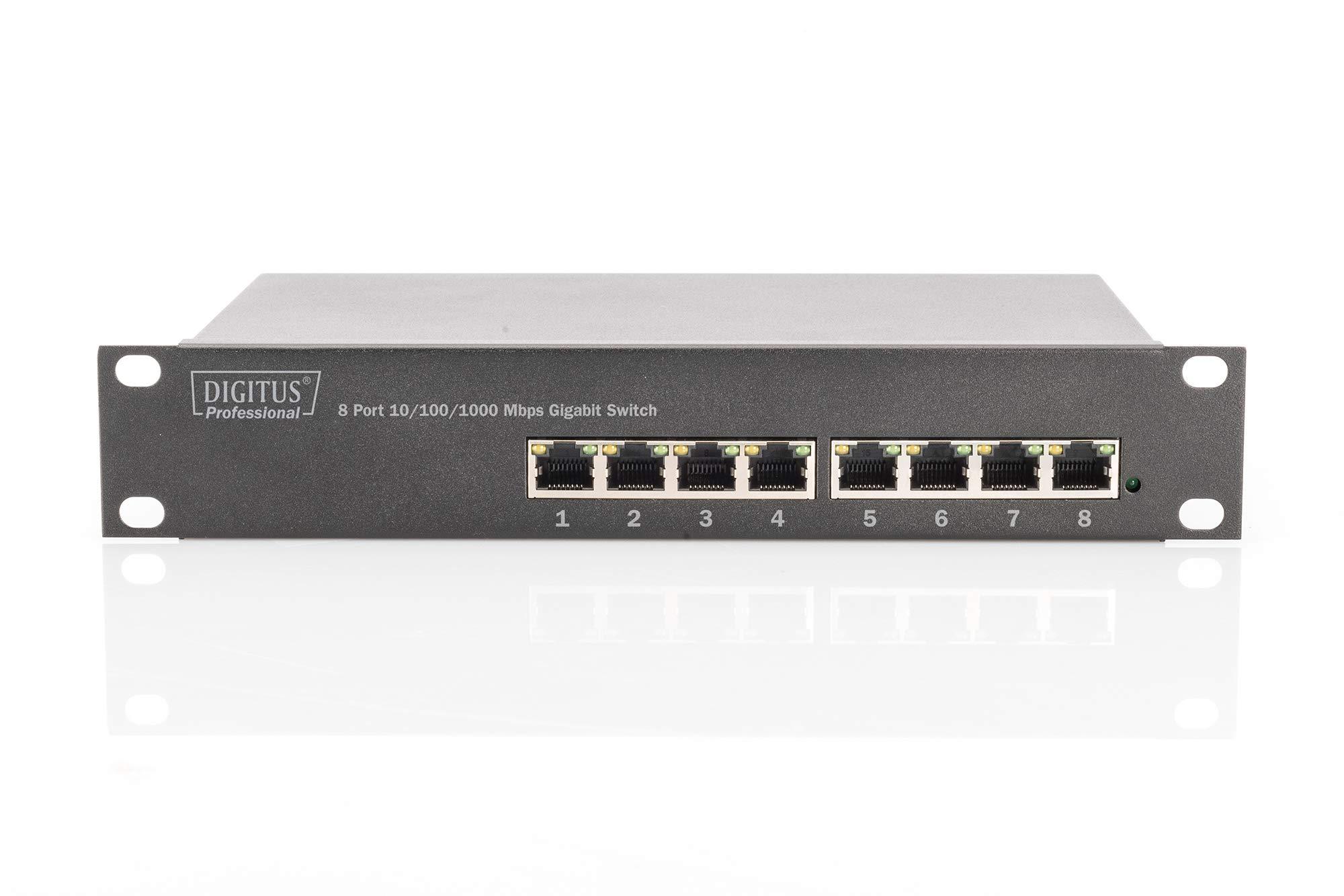 DIGITUS Switch di rete Gigabit Ethernet, 10 pollici, 8 porte, non gestito, backplane 16 Gbps, Auto MDI/MDI-X, nero