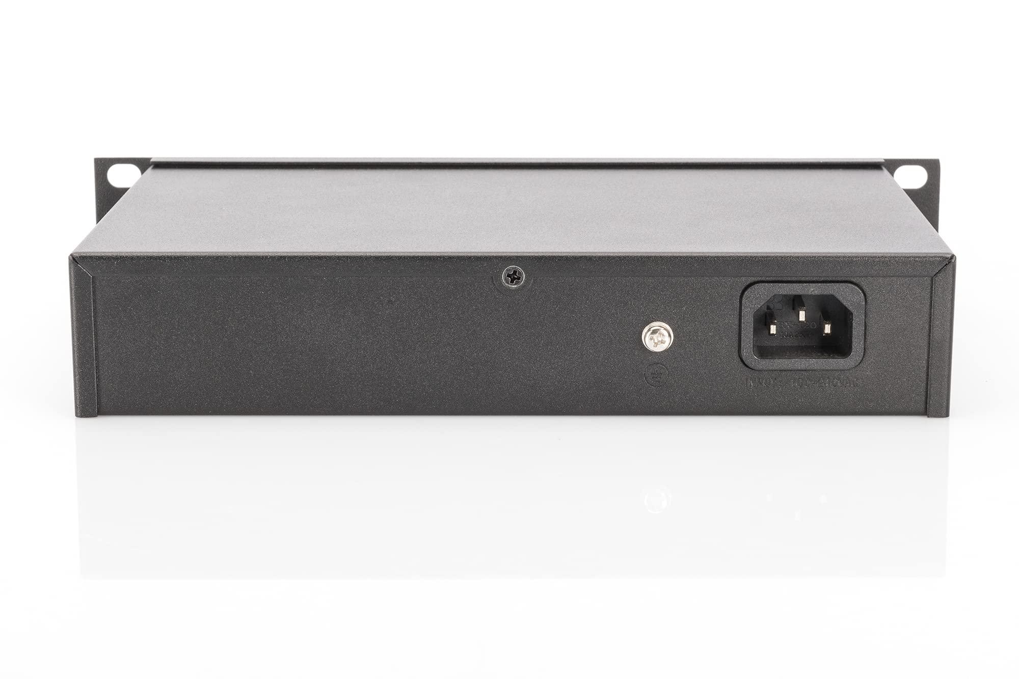 DIGITUS Switch Gigabit Ethernet PoE+, 10 pollici, 8 porte, Non gestito, IEEE 802.3at, 96 Watt di budget di potenza, Nero
