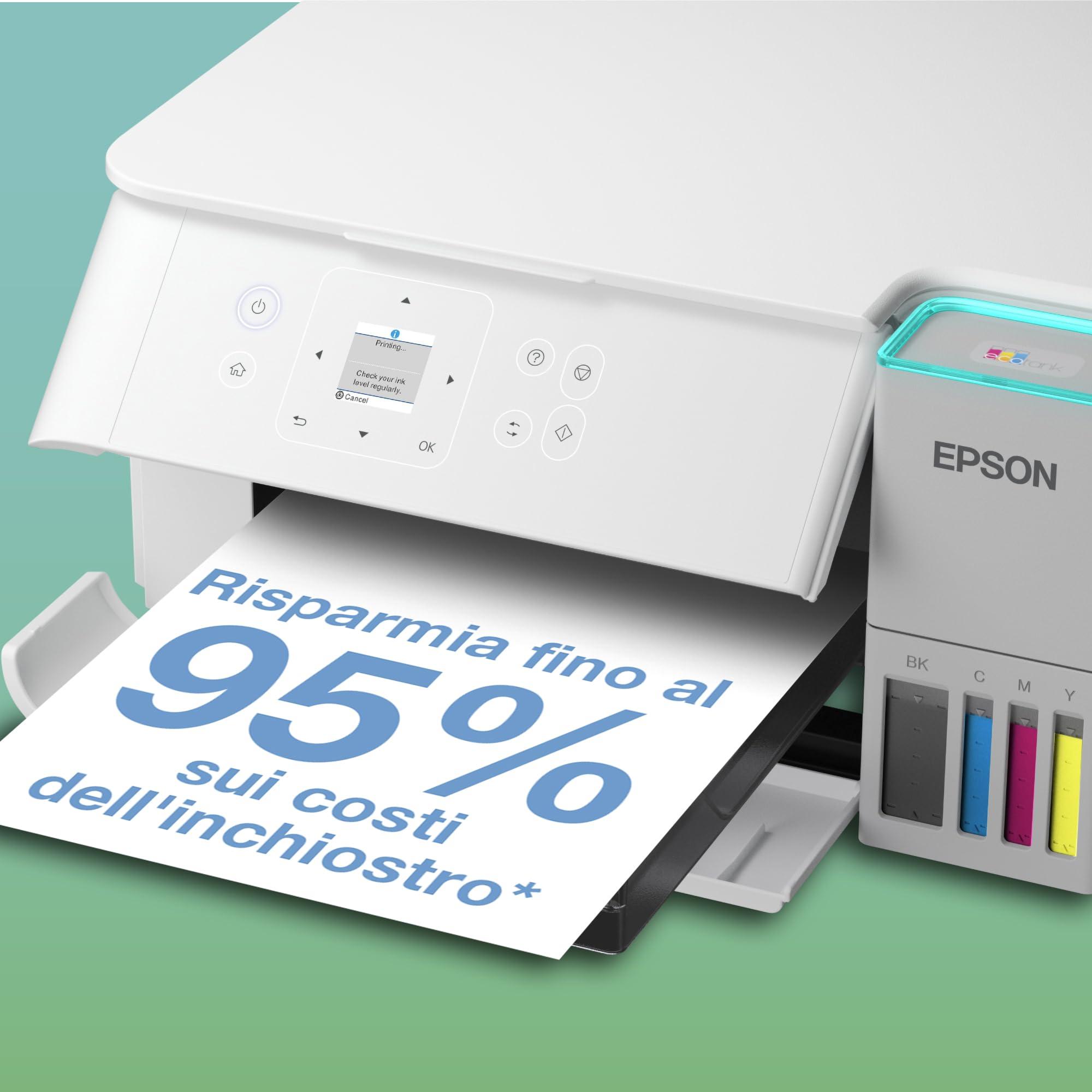 EcoTank ET-2956 - Stampante multifunzione A4 con contenitore d'inchiostro, Wi-Fi e AirPrint: scansione, copia, stampa fronte/retro e getto d'inchiostro fino a 3 anni - Bianco