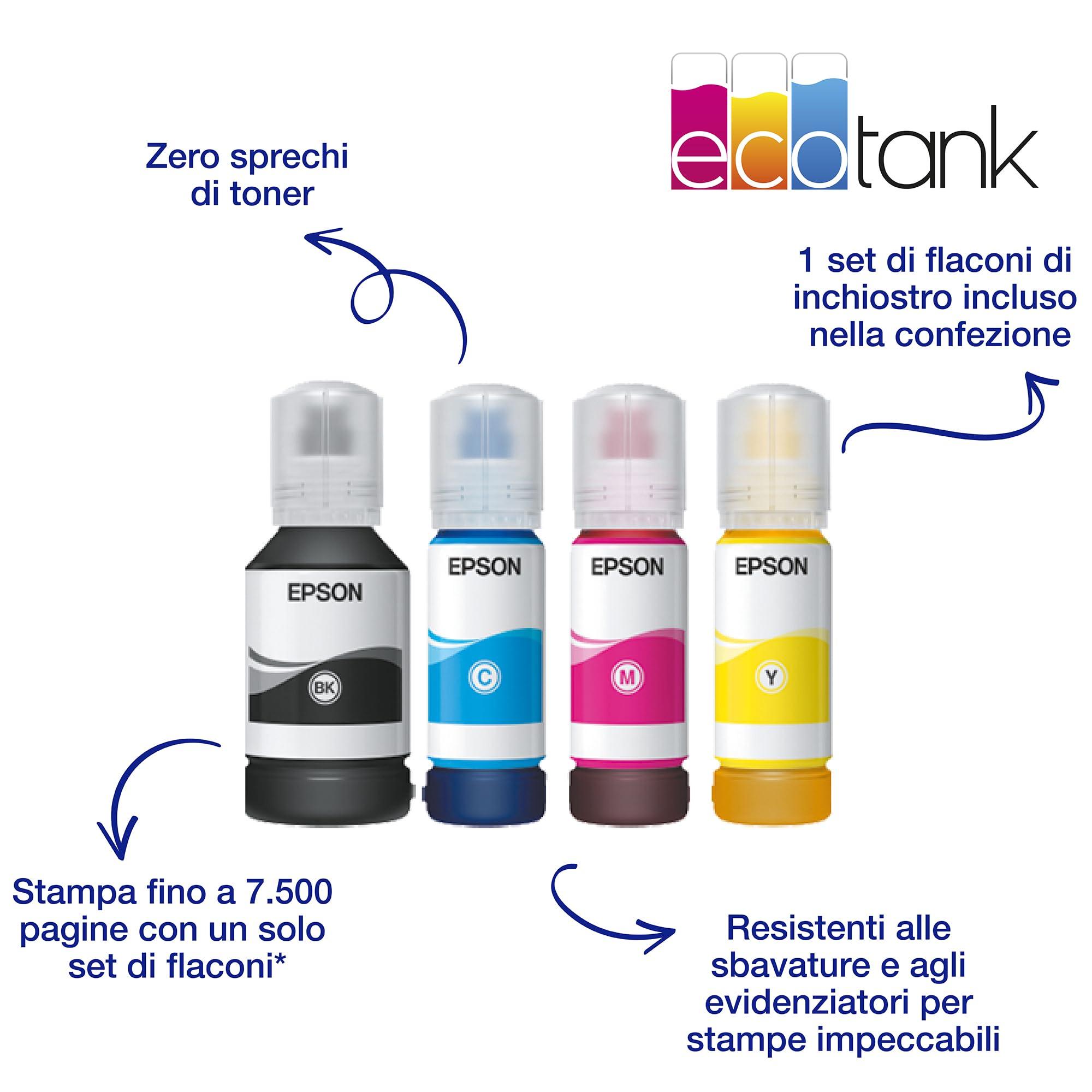 - CON UN SET DI FLACONI DI RICAMBIO PUOI STAMPARE FINO A 7.500 PAGINE IN BIANCO E NERO E FINO A 6.000 A COLORI* - Basta aggiungere carta per stampare con pochi passaggi!