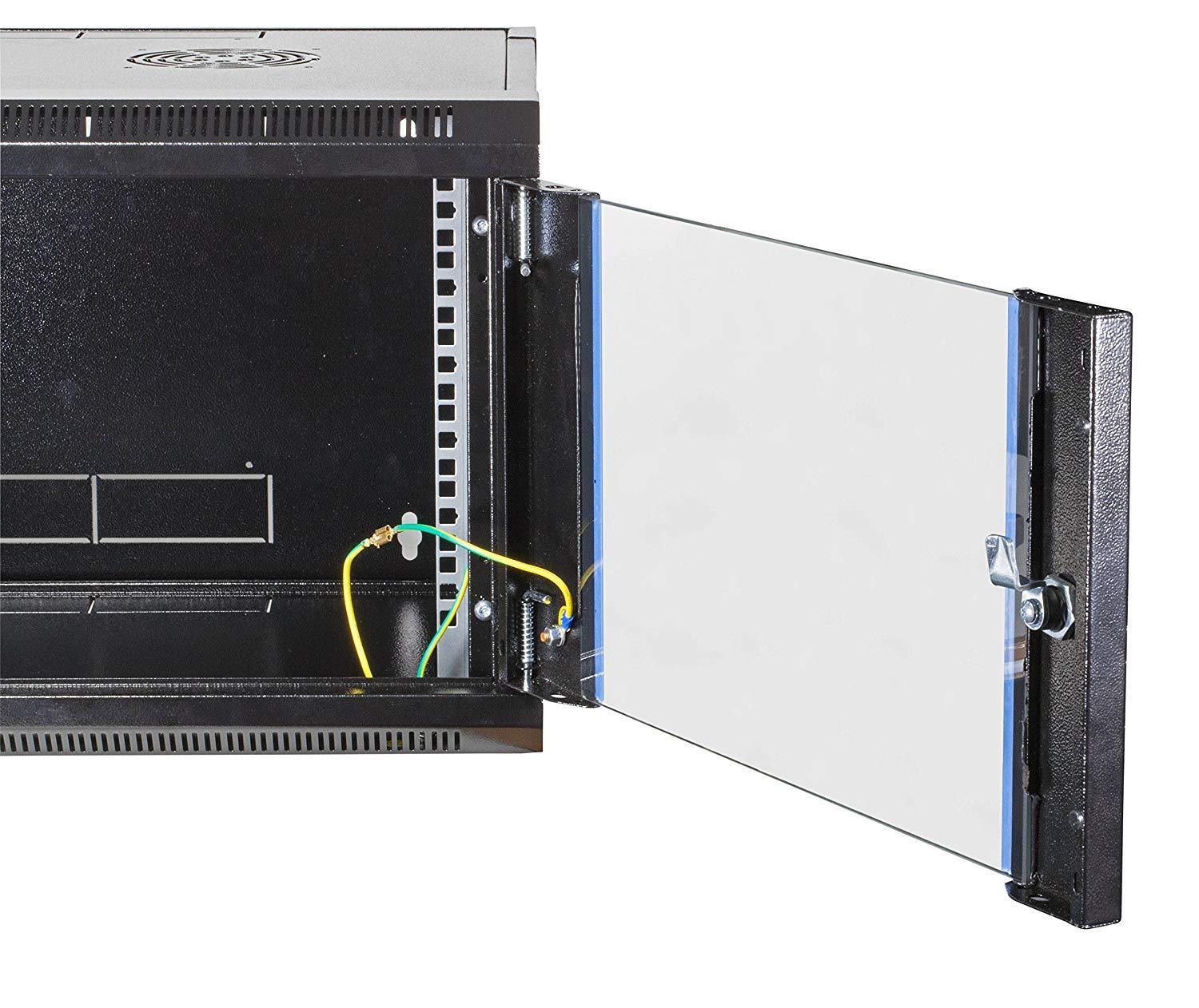 'Cassa in lamiera di acciaio con manico telaio non premontato, tetto eigenbelueftet pareti laterali removibili con chiusura rapida, fondo e parete posteriore con pretagliate perdite per l' ingresso del cavo (230 X 41 mm) tetto predisposto per l' installazione di 2 ventole X singolo (art. Nr. 691664) interno anteriore 2 X 19, profondità porta anteriore con finestra in vetro di sicurezza certificato con chiusura a camma (spessore vetro 4 mm) con l' interno completamente a terra, portata 60 kg classe di protezione IP20 verniciatura RAL9005, nero, accessori inclusi: 2 X chiave fornito smontato in imballaggio per il trasporto (1 scatola)