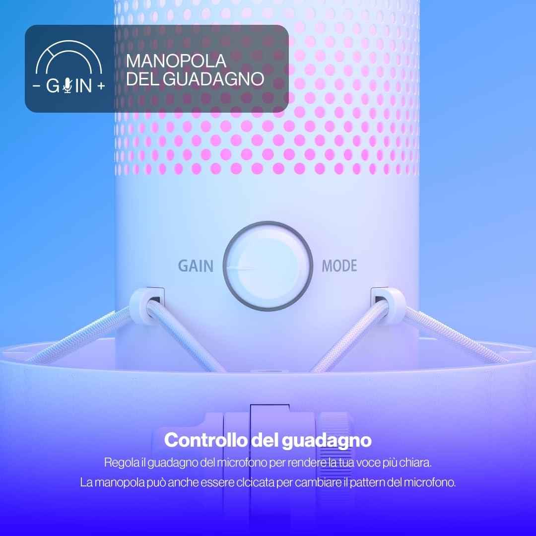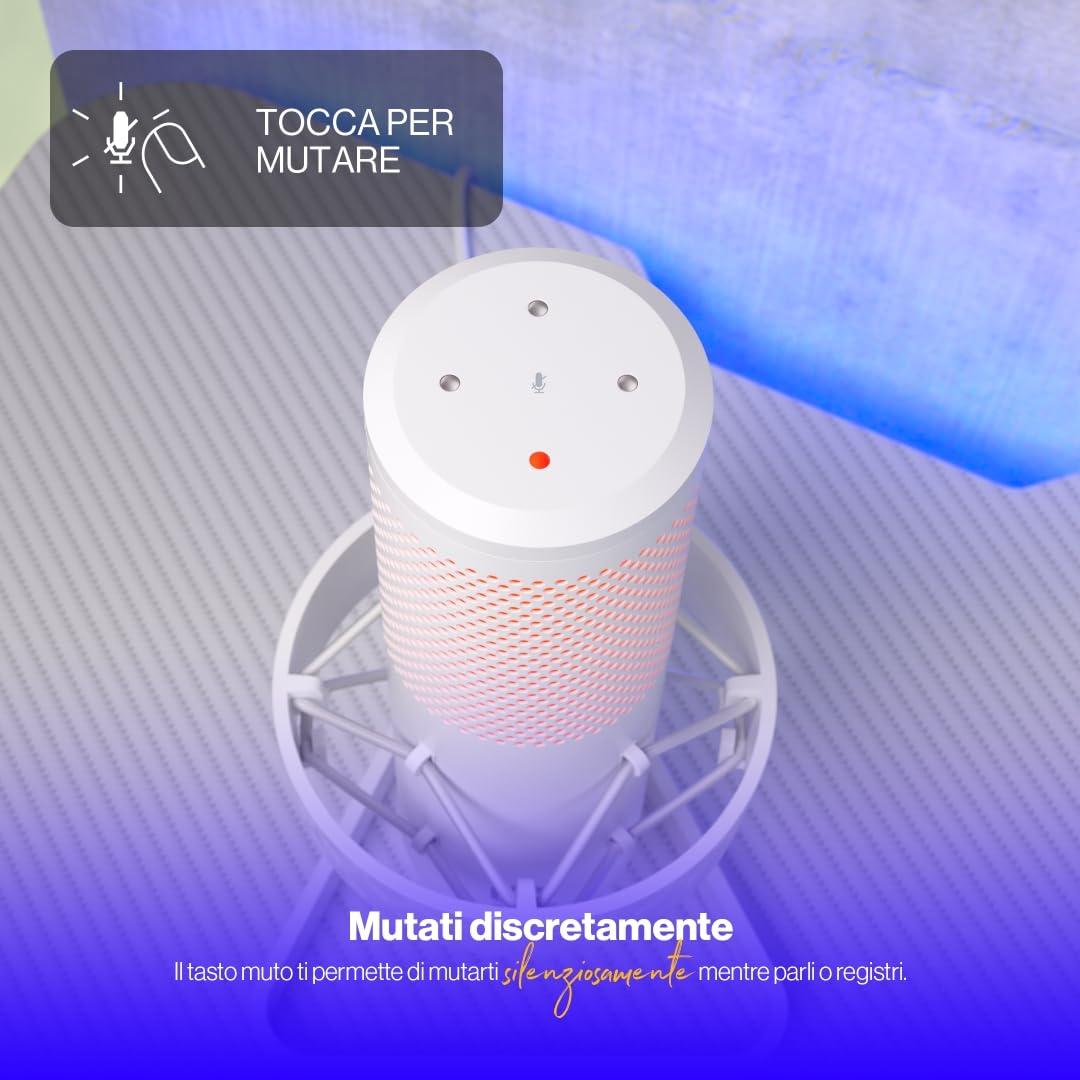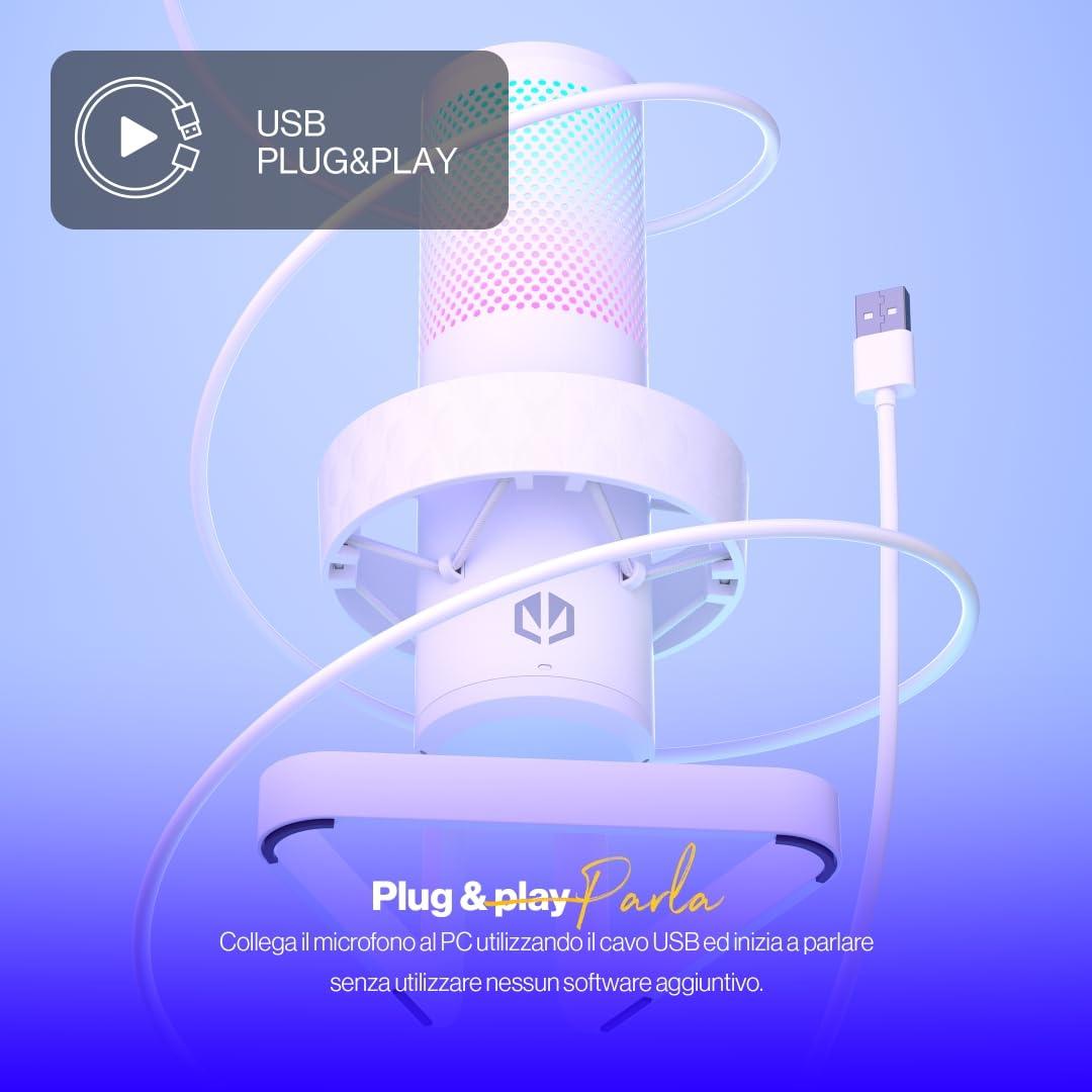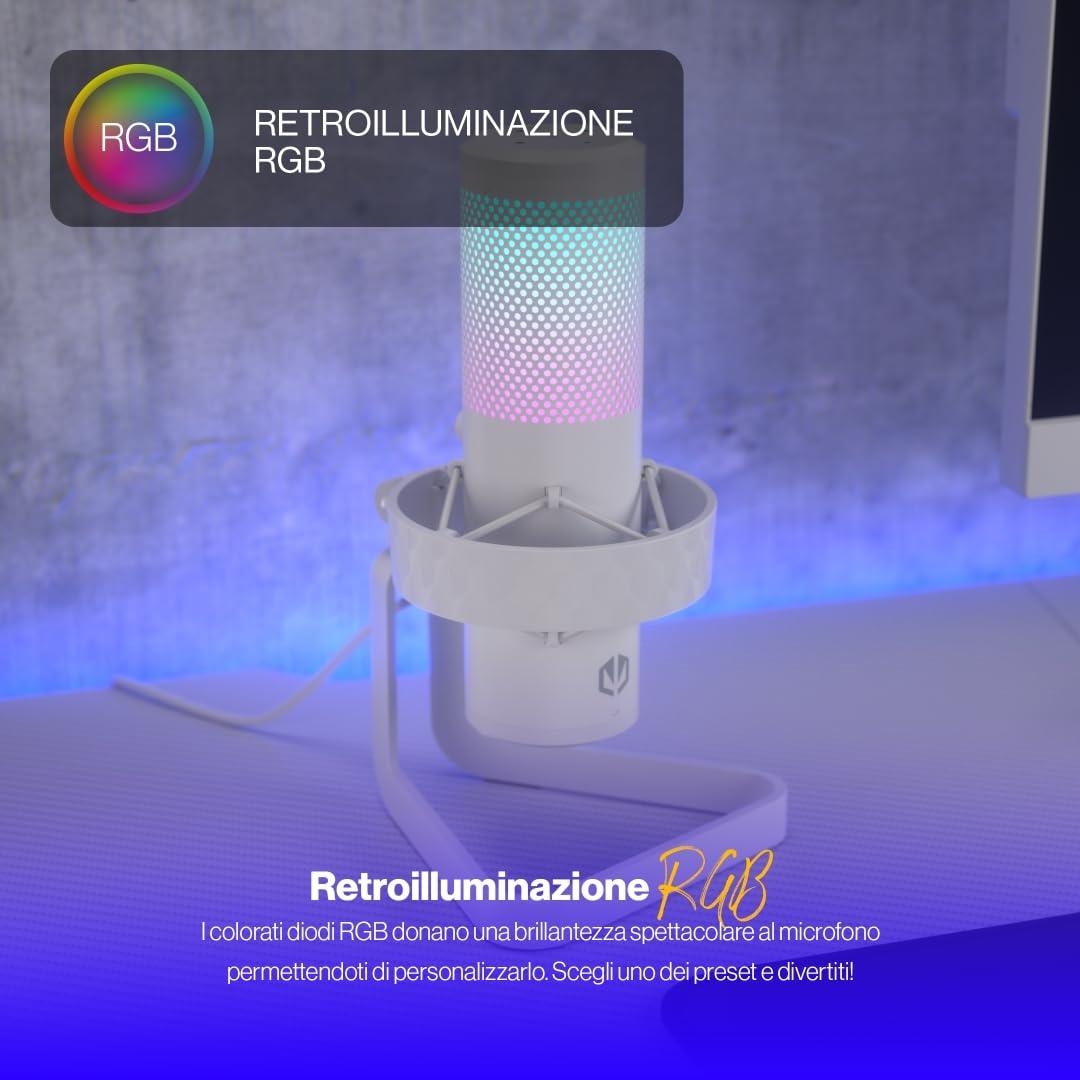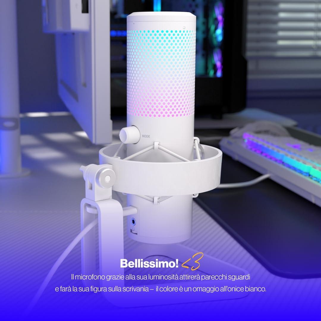 ENDORFY Axis Streaming Onyx White, Effetti RGB dinamici, Jack per Cuffie, Tasto Touch per mutare con indicatore LED, manopola del Guadagno, USB Plug&Play, Microfono con Pattern Regolabile, EY1B007