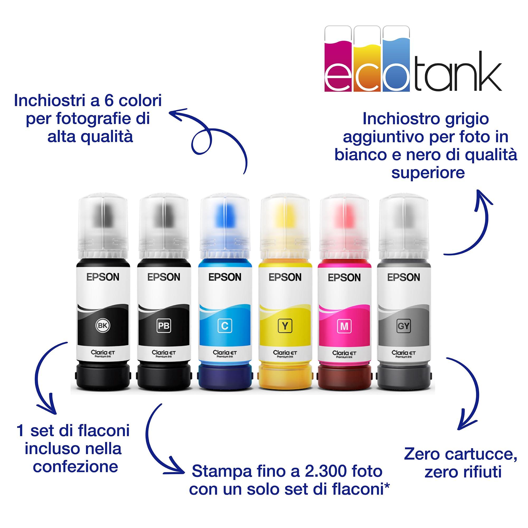 - Inchiostro Epson Claria ET Premium a 6 colori: stampa immagini a colori A4 senza bordi e splendide foto in bianco e nero.