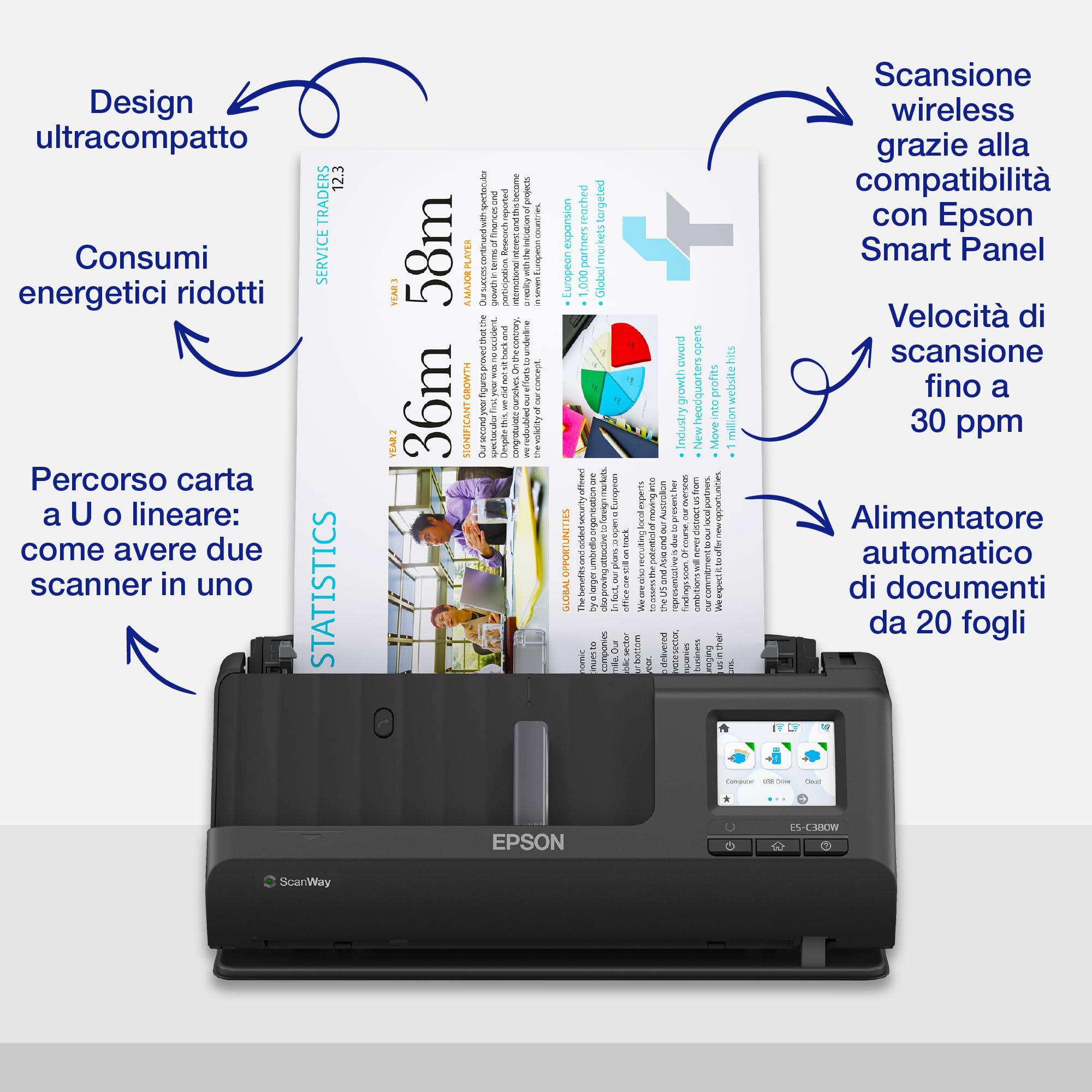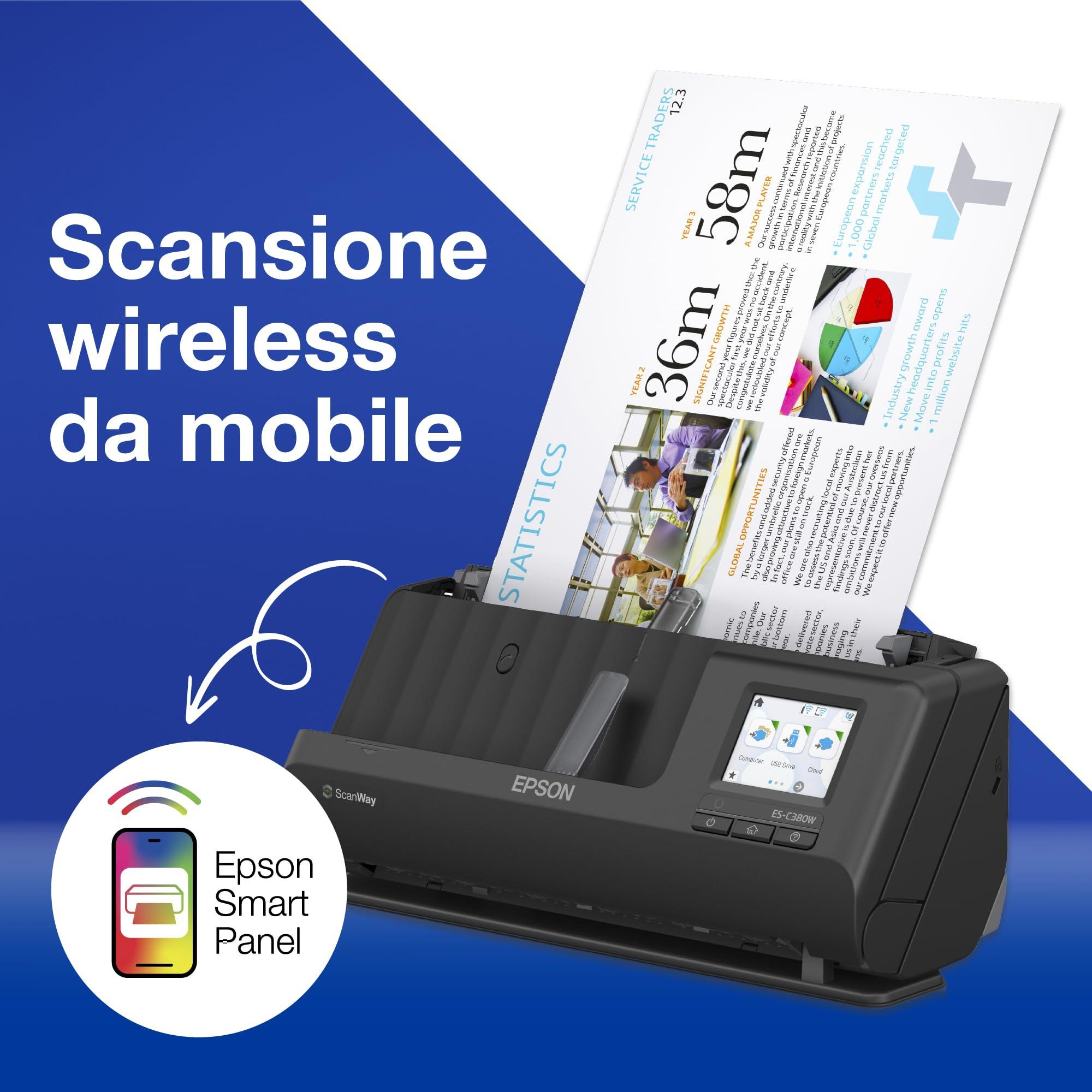 Epson ES-C380W Scanner per Documenti e Foto, Velocità Rapida di Scansione, Connessione Wireless, Facile da Usare e Ottimizzato per la Gestione dei Documenti, 600 dpi x 600 dpi