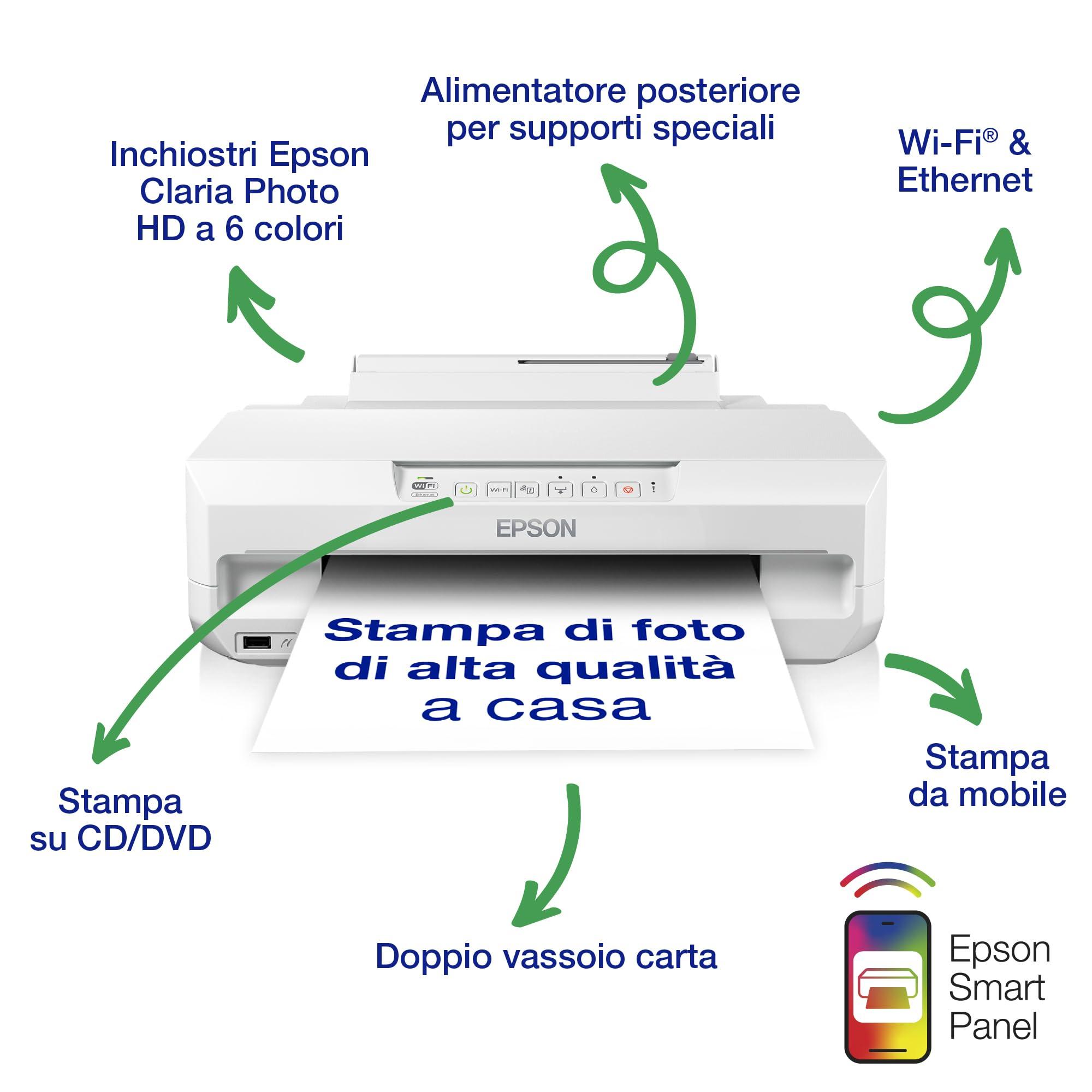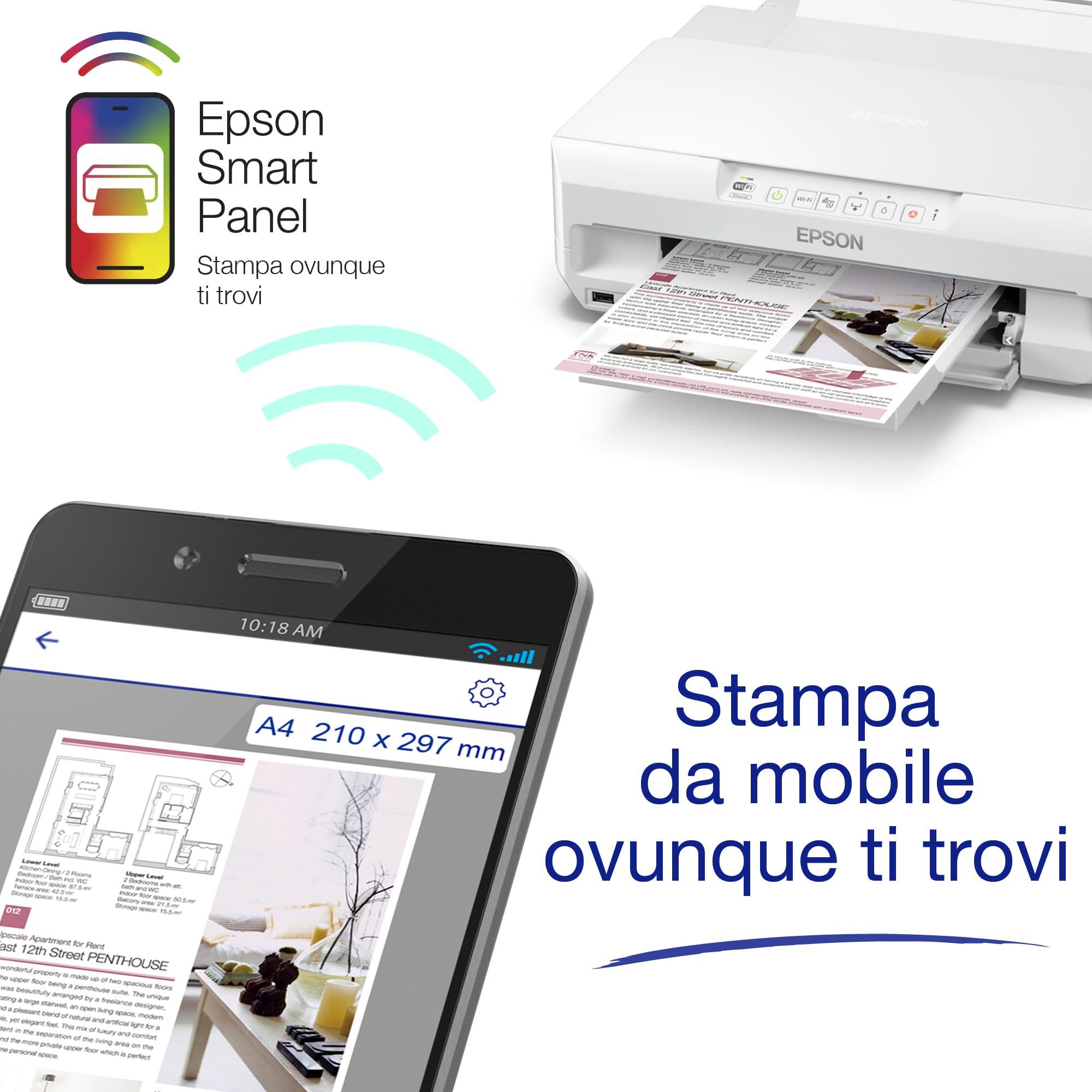 - Versatilità al passo con i tempi. Grazie alla connettività completa Wi-Fi, Wi-Fi Direct ed Ethernet, integrare questa stampante nell’ambiente di casa esistente è davvero semplice! Puoi anche stampare direttamente dal tuo telefono o tablet, configurare e risolvere i problemi della stampante e dare libero sfogo alla tua creatività con una vasta scelta di template artistici con l’app Epson Smart Panel*.
