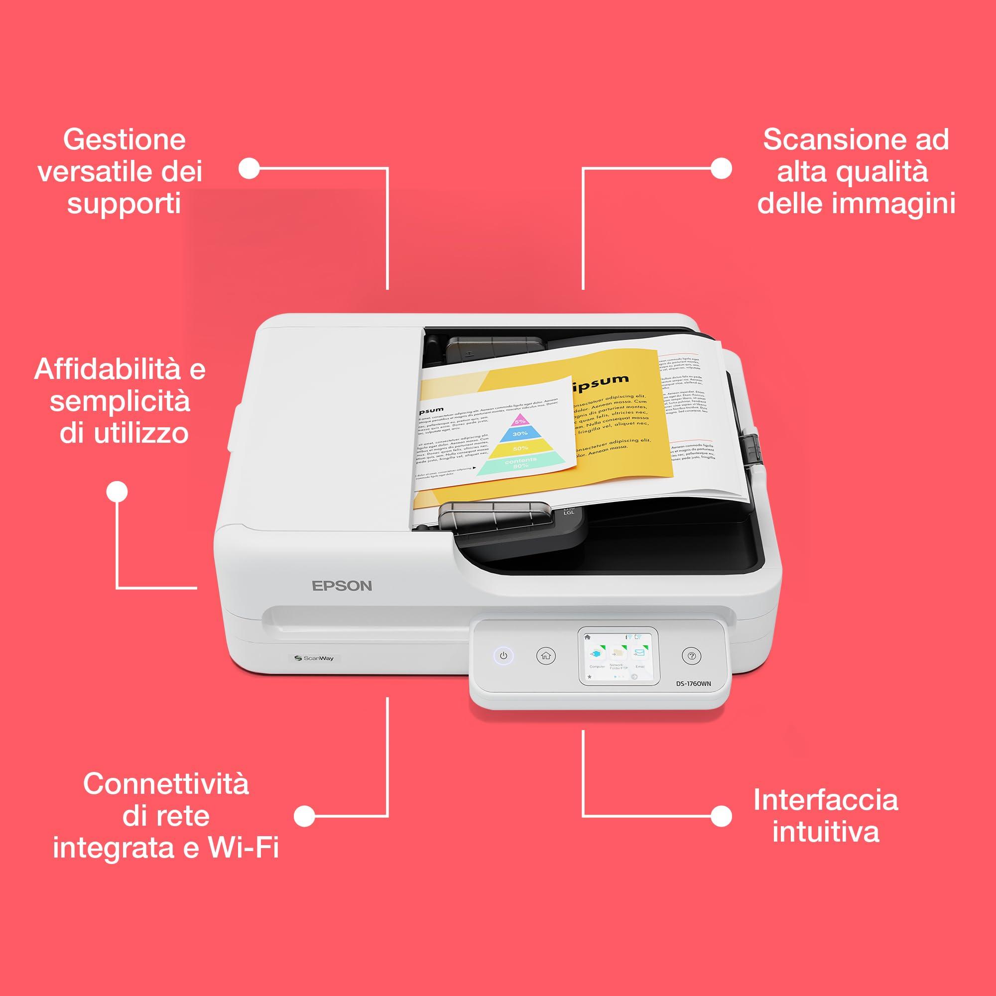 EPSON WORKFORCE DS-1760WN: Scanner piano A4 con Wi-Fi, rete integrata e touchscreen LCD; ricco di funzionalità e dal prezzo competitivo: la soluzione aziendale ideale per prestazioni e convenienza