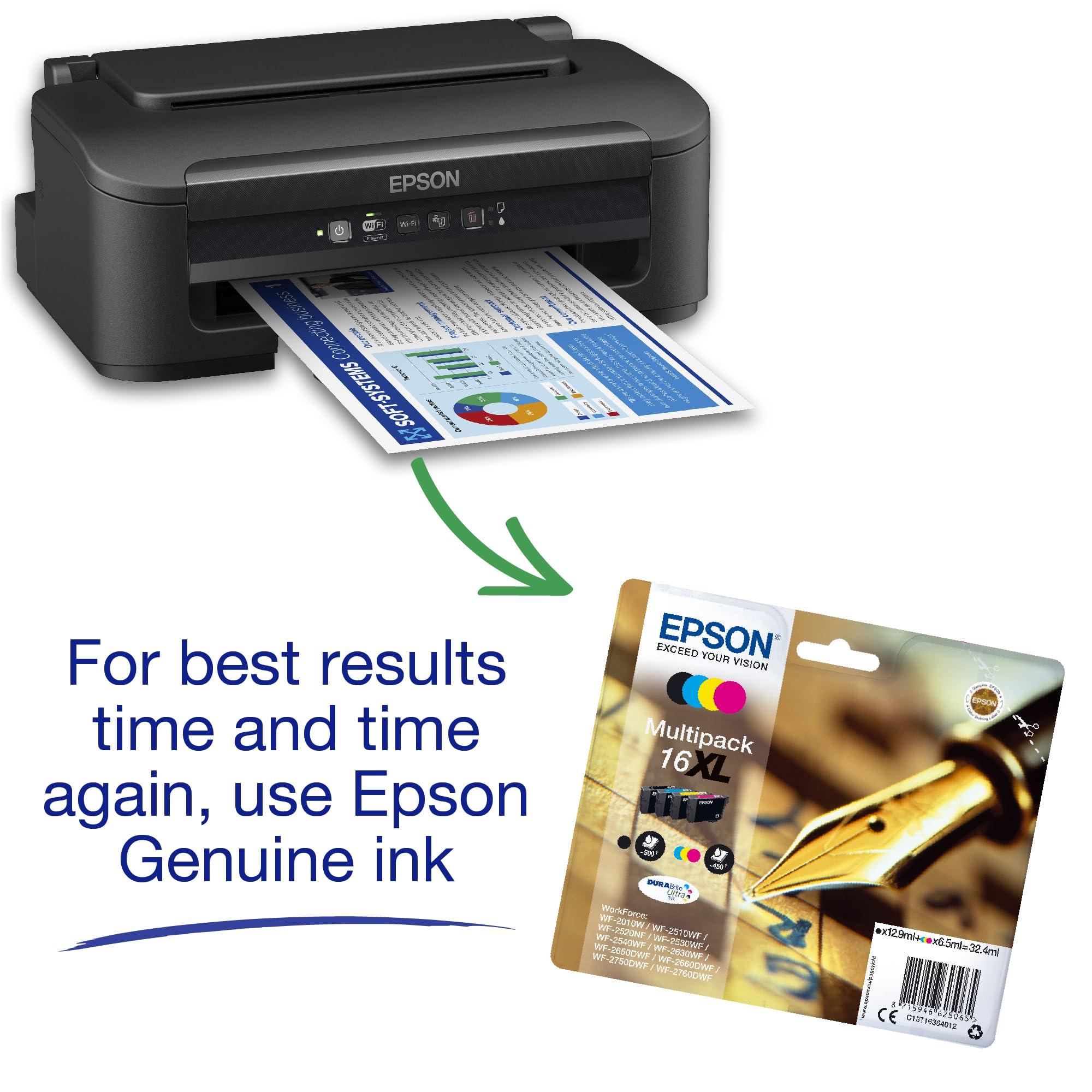 Epson WorkForce WF-2110W WF 2110W WF2110W A4 Printer. A4, 9 pages/min Monochrome, 4.7 pages/min Colour. 5,760 x 1,440