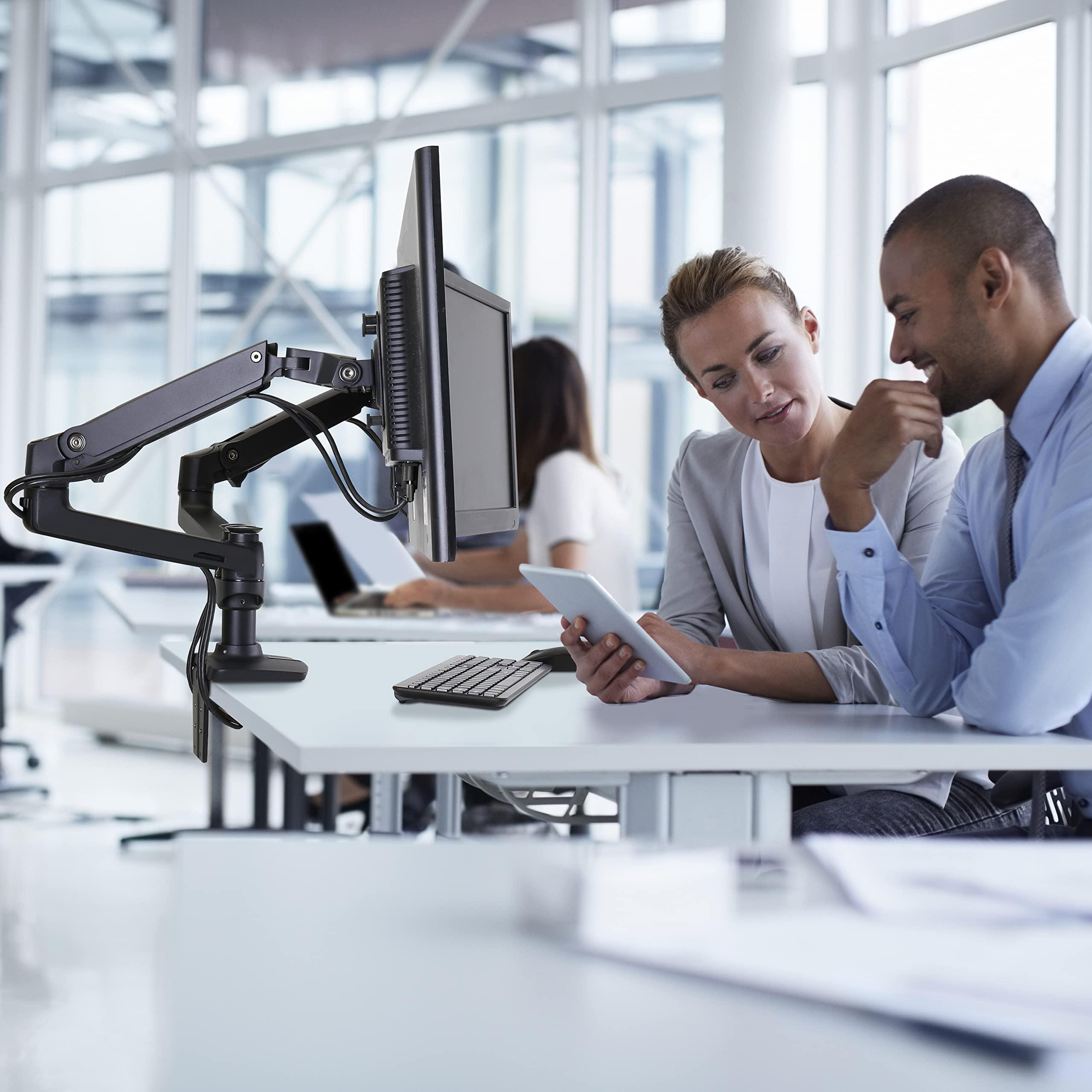 - Semplicità e funzionalità: supporta diverse opzioni per trovare la visuale migliore e aumentare la produttività; i bracci si ripiegano per liberare spazio per gli articoli essenziali da ufficio; il morsetto a basso profilo si adatta a spazi ristretti, gestione dei cavi per uno spazio di lavoro ordinato