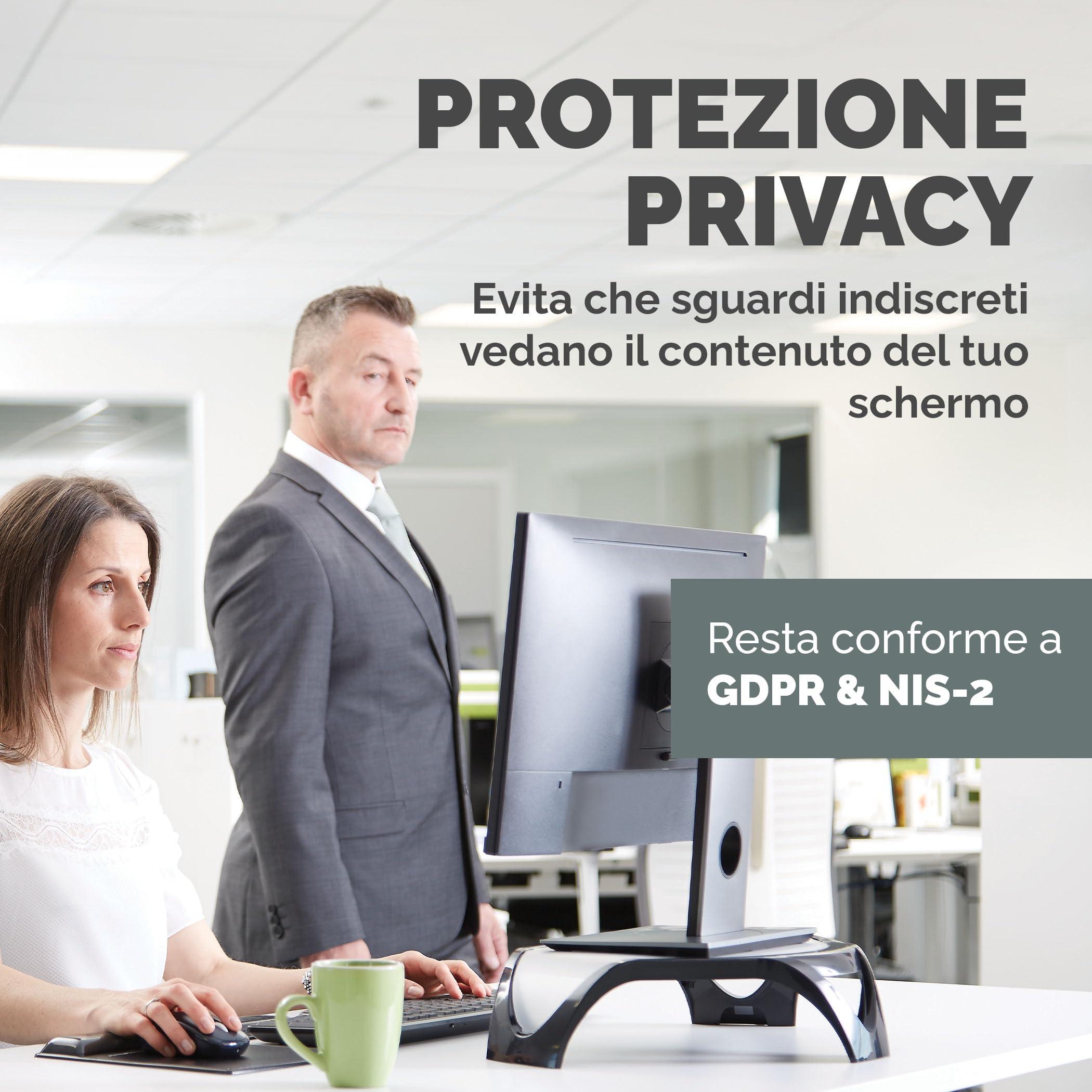 • PROTEGGI I TUOI DATI – Resta conforme al GDPR e alla direttiva NIS2. Proteggi i contenuti sullo schermo, ovunque tu lavori, dal fenomeno del shoulder surfing (cioè quando una persona di passaggio cattura informazioni sensibili dal tuo schermo, visivamente o tramite tecnologia).