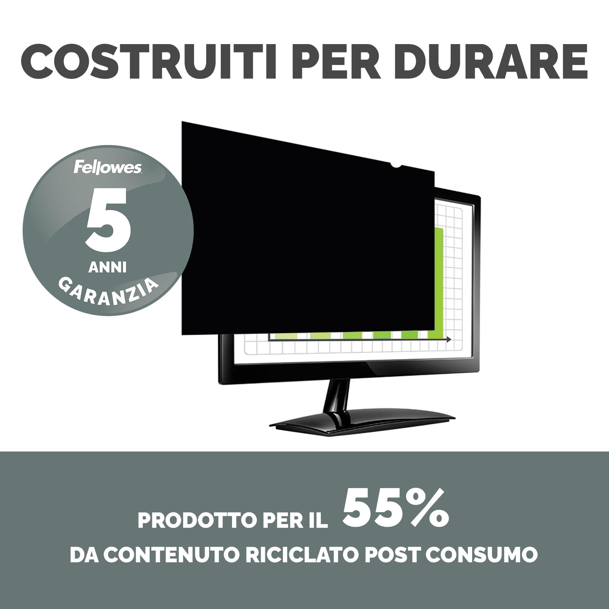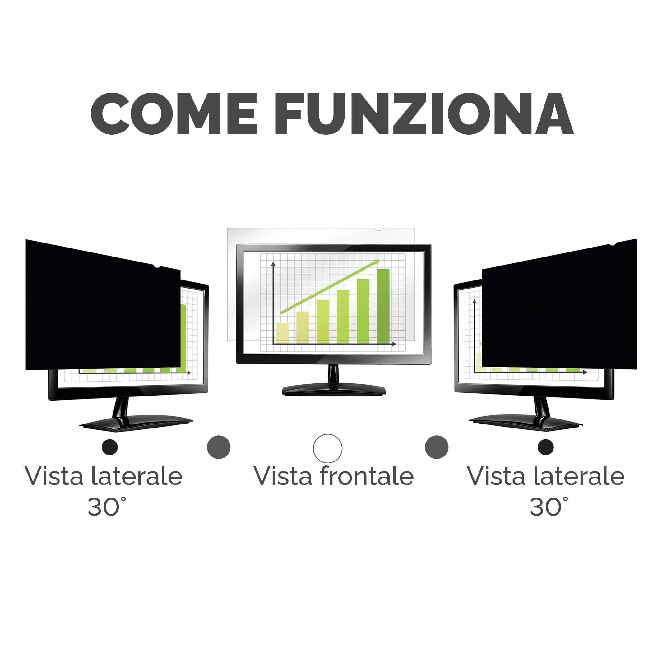 • COME FUNZIONA – Mantenendo una visione perfettamente nitida frontale, il filtro privacy widescreen Fellowes oscura lo schermo quando viene osservato lateralmente, con un oscuramento totale a 30 gradi, proteggendo i contenuti sullo schermo in modo semplice ed efficace.