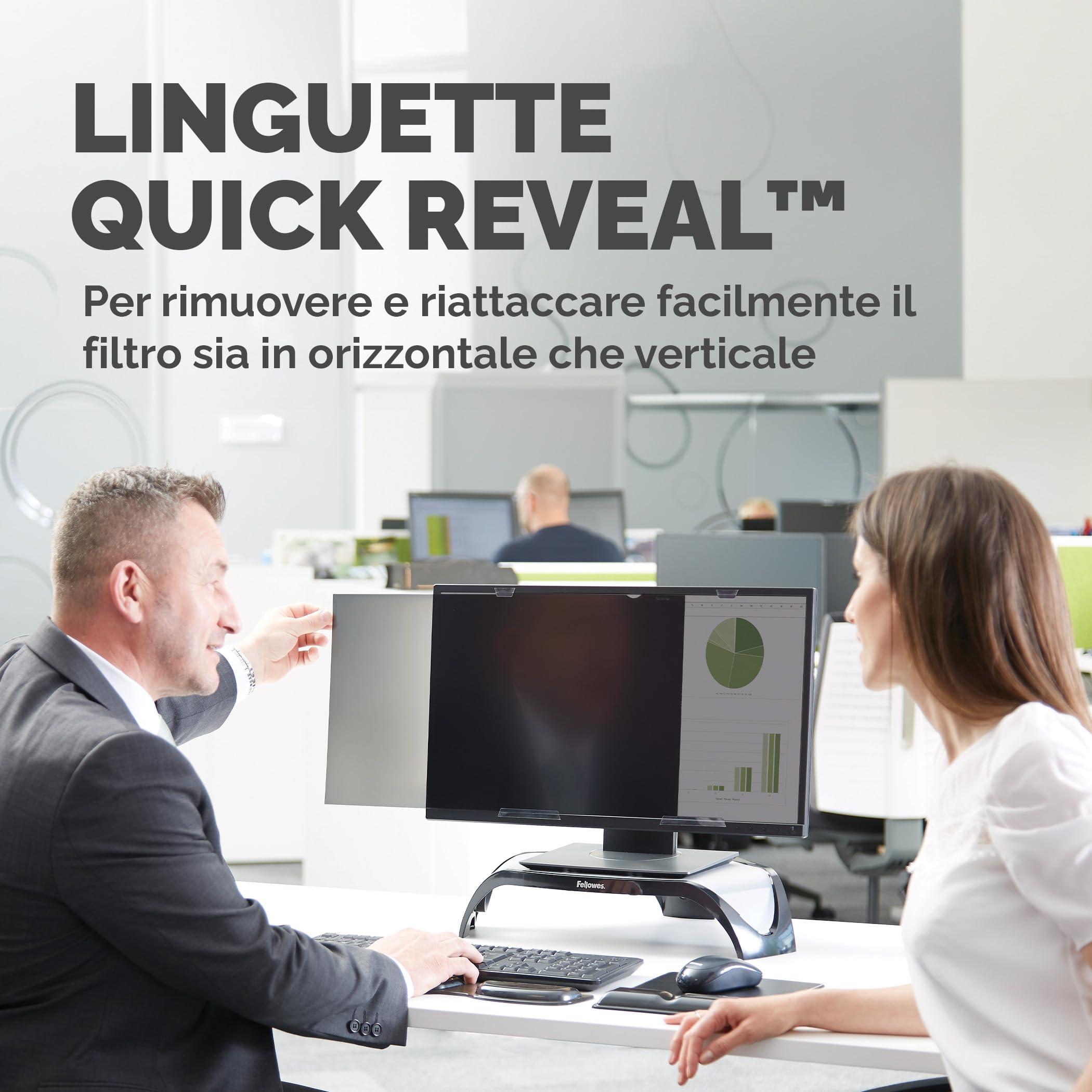 Fellowes PrivaScreen Filtro Privacy - Protezione antiriflesso e Luce Blu per Monitor 23,8" Pollici (Rapporto 16:09, 528 x 297mm) - Aggancio e rimozione Facili con linguette Quick Reveal™